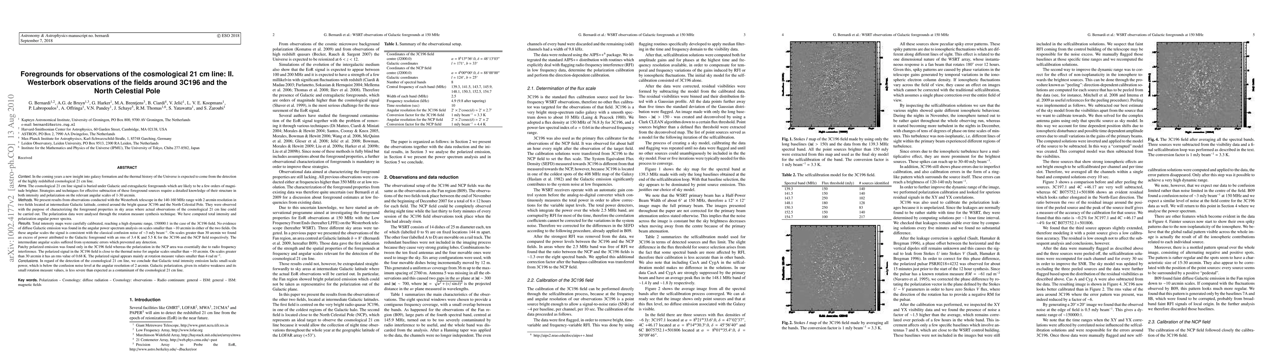 In the coming years a new insight into galaxy formation and the thermal history of the Universe is expected to come from the detection of the highly redshifted cosmological 21 cm line. The cosmological 21 cm line signal is buried under Galactic and extragalactic foregrounds which are likely to be a few orders of magnitude brighter. Strategies and techniques for effective subtraction of these foreground sources require a detailed knowledge of their structure in both intensity and polarization on the relevant angular scales of 1-30 arcmin. We present results from observations conducted with the Westerbork telescope in the 140-160 MHz range with 2 arcmin resolution in two fields located at intermediate Galactic latitude, centred around the bright quasar 3C196 and the North Celestial Pole. They were observed with the purpose of characterizing the foreground properties in sky areas where actual observations of the cosmological 21 cm line could be carried out. The polarization data were analysed through the rotation measure synthesis technique. We have computed total intensity and polarization angular power spectra. Total intensity maps were carefully calibrated, reaching a high dynamic range, 150000:1 in the case of the 3C196 field. [abridged]