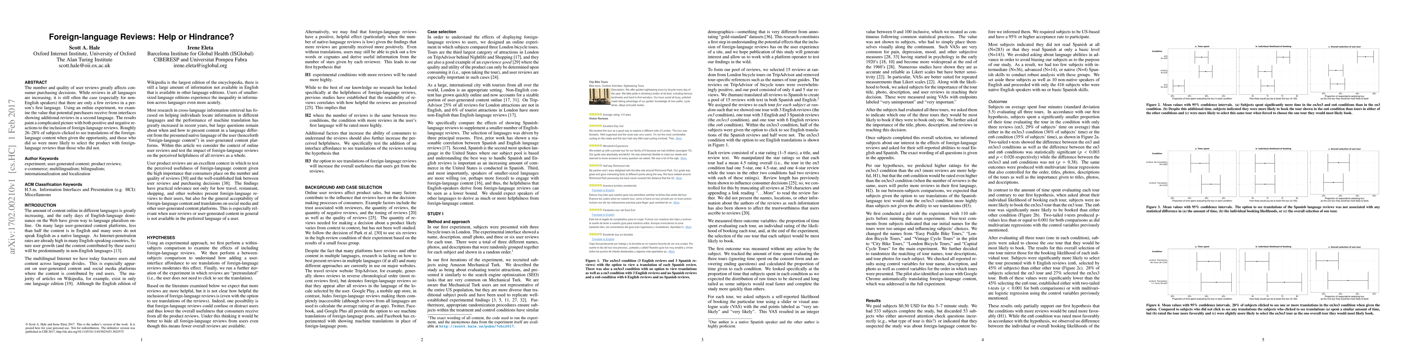 This study investigates how foreign-language reviews impact consumer purchasing decisions, finding that while 26-28% of participants clicked to view translations, the inclusion of such reviews led to mixed reactions, with some participants more likely to select products featuring them.