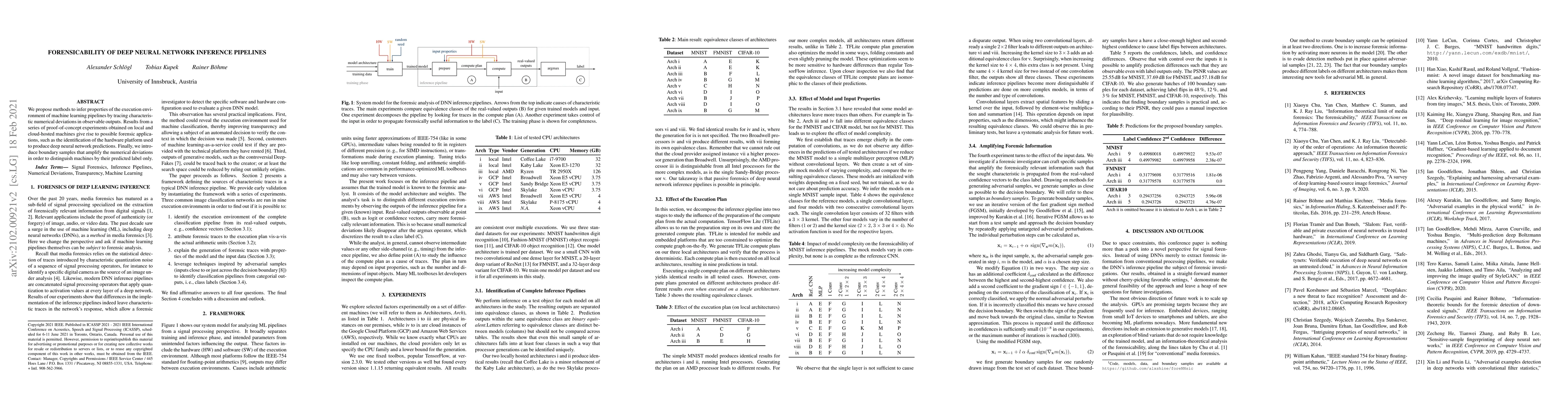 We propose methods to infer properties of the execution environment of machine learning pipelines by tracing characteristic numerical deviations in observable outputs. Results from a series of proof-of-concept experiments obtained on local and cloud-hosted machines give rise to possible forensic applications, such as the identification of the hardware platform used to produce deep neural network predictions. Finally, we introduce boundary samples that amplify the numerical deviations in order to distinguish machines by their predicted label only.
