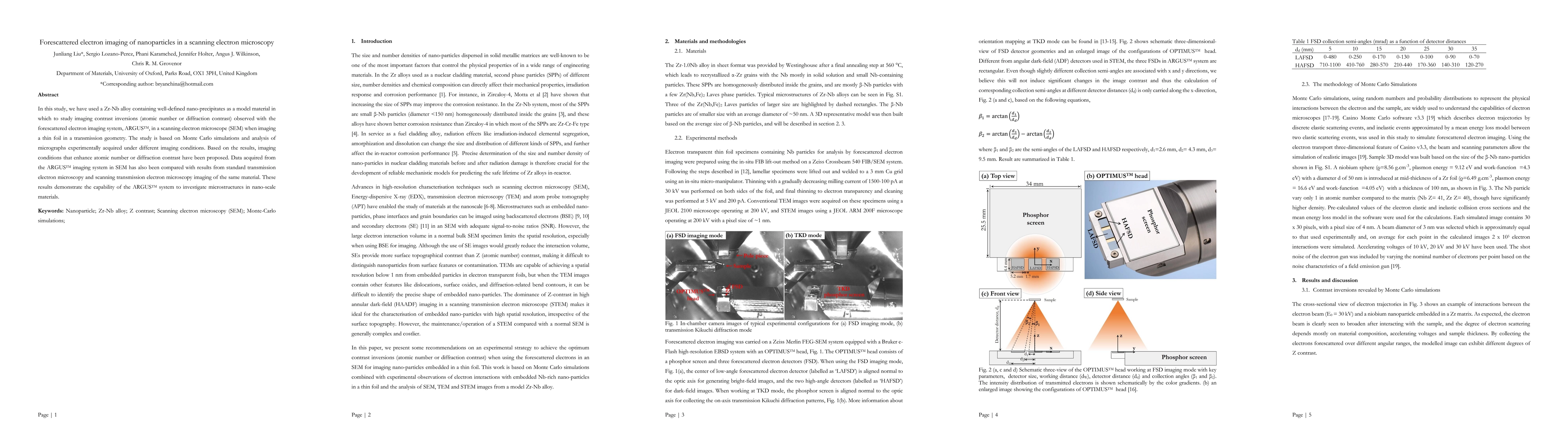 This research indicates that imaging thin foils in transmission with forescattered electrons in an SEM is suitable for investigating the microstructure of engineering materials, including embedded small nanoparticles, without the need for expensive TEM or STEM instrumentation.