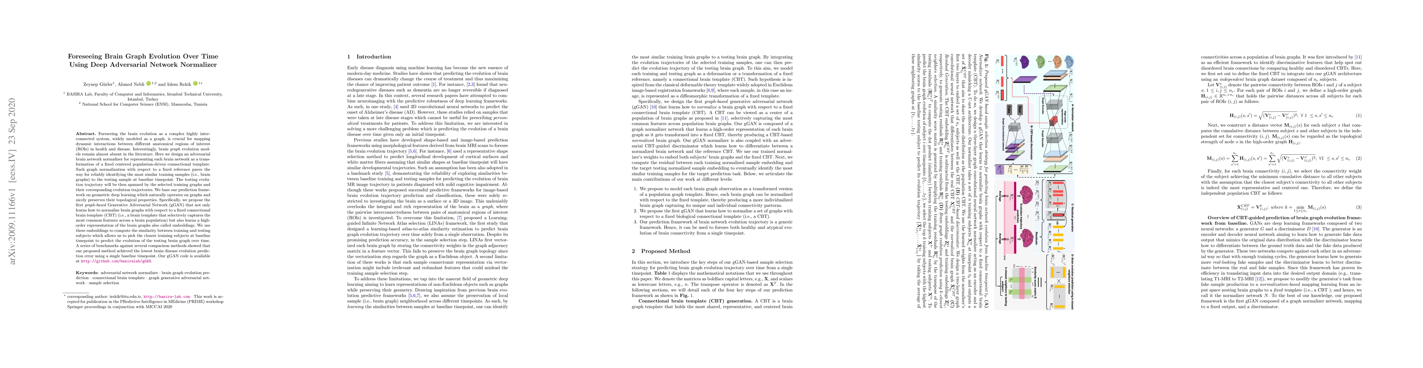 This paper proposes a novel graph-based Generative Adversarial Network (gGAN) to normalize brain graphs against a fixed connectional template, enabling the prediction of brain evolution over time. The method achieves the lowest prediction error for brain disease evolution using a single baseline timepoint, demonstrating its effectiveness in modeling dynamic interactions in brain graphs.
