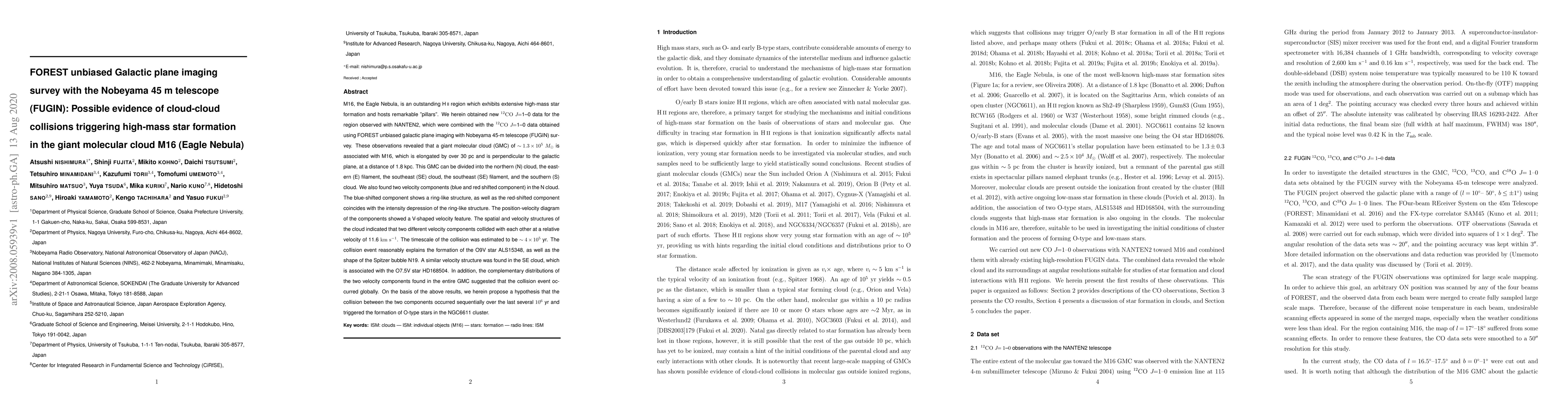 M16, the Eagle Nebula, is an outstanding \HII \ region which exhibits extensive high-mass star formation and hosts remarkable "pillars". We herein obtained new $^{12}$CO $J=$1-0 data for the region observed with NANTEN2, which were combined with the $^{12}$CO $J=$1-0 data obtained using FUGIN survey. These observations revealed that a giant molecular cloud (GMC) of $\sim 1.3 \times 10^5$ \Msun \ is associated with M16, which is elongated by over 30 pc and is perpendicular to the galactic plane, at a distance of 1.8 kpc. This GMC can be divided into the northern (N) cloud, the eastern (E) filament, the southeast (SE) cloud, the southeast (SE) filament, and the southern (S) cloud. We also found two velocity components (blue and red shifted component) in the N cloud. The blue-shifted component shows a ring-like structure, as well as the red-shifted component coincides with the intensity depression of the ring-like structure. The position-velocity diagram of the components showed a V-shaped velocity feature. The spatial and velocity structures of the cloud indicated that two different velocity components collided with each other at a relative velocity of 11.6 \kms. The timescale of the collision was estimated to be $\sim 4 \times 10^5$ yr. The collision event reasonably explains the formation of the O9V star ALS15348, as well as the shape of the Spitzer bubble N19. A similar velocity structure was found in the SE cloud, which is associated with the O7.5V star HD168504. In addition, the complementary distributions of the two velocity components found in the entire GMC suggested that the collision event occurred globally. On the basis of the above results, we herein propose a hypothesis that the collision between the two components occurred sequentially over the last several $10^{6}$ yr and triggered the formation of O-type stars in the NGC6611 cluster.