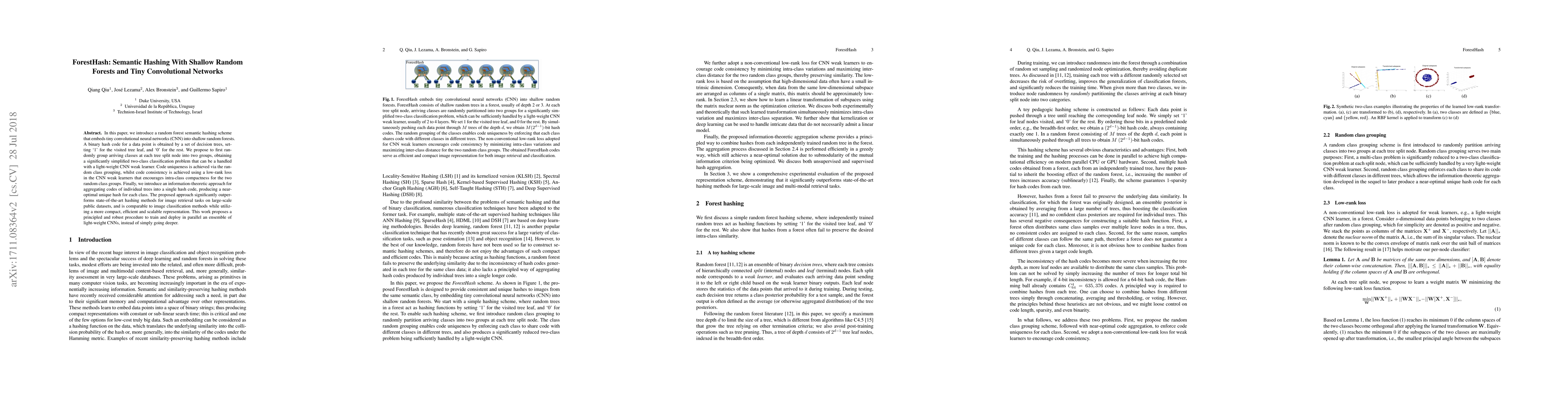 Researchers introduce ForestHash, a novel approach to hashing images that combines shallow random forests with tiny convolutional networks for efficient similarity preservation. The method outperforms state-of-the-art hashing methods on large-scale public datasets.