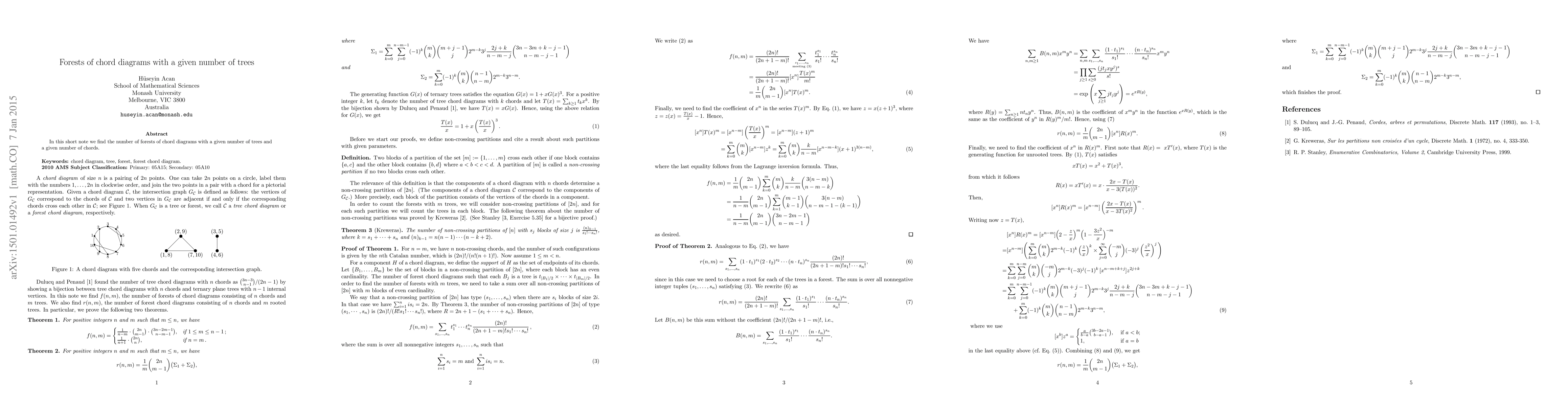 This research paper finds a formula for calculating the number of forests of chord diagrams with a given number of trees and chords, providing new insights into combinatorial structures.