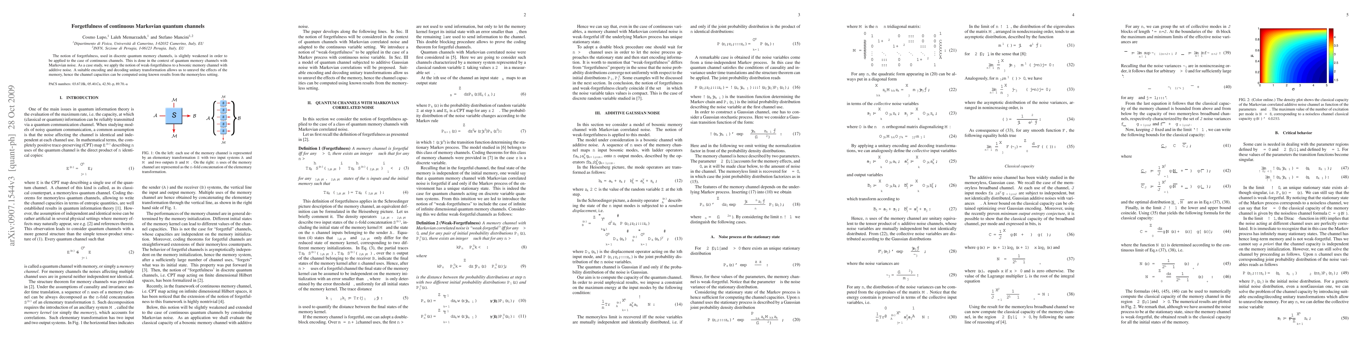 The notion of forgetfulness, used in discrete quantum memory channels, is slightly weakened in order to be applied to the case of continuous channels. This is done in the context of quantum memory channels with Markovian noise. As a case study, we apply the notion of weak-forgetfulness to a bosonic memory channel with additive noise. A suitable encoding and decoding unitary transformation allows us to unravel the effects of the memory, hence the channel capacities can be computed using known results from the memoryless setting.
