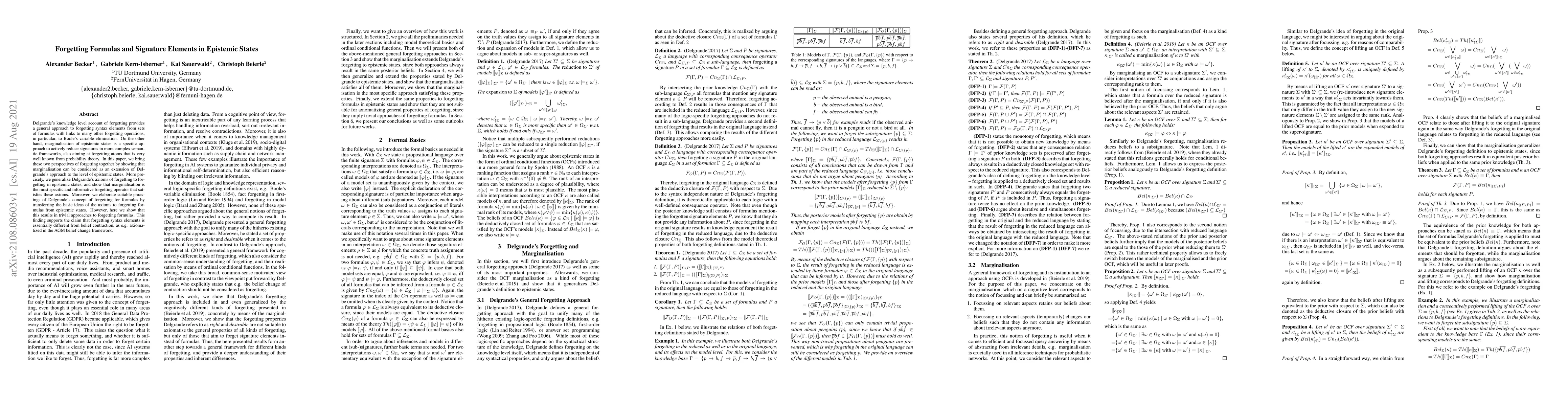 This paper integrates Delgrande's syntactic forgetting approach with the semantic framework of epistemic states, showing that marginalization is an extension of Delgrande's approach. It concludes that forgetting syntax elements differs fundamentally from belief contraction, as seen in the AGM framework.