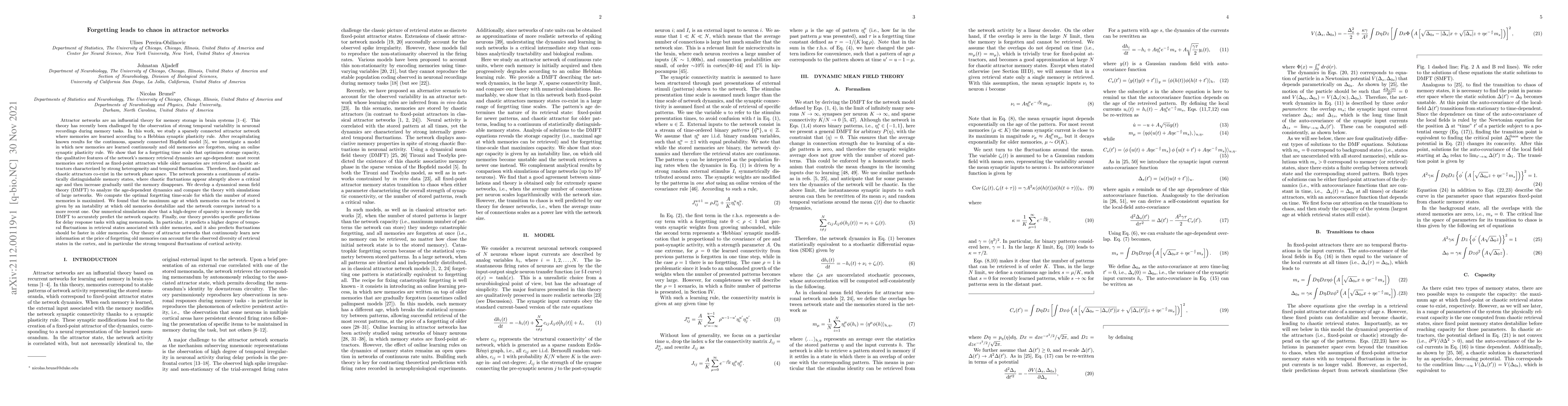 This research explores attractor networks, a theory for memory storage in the brain, addressing observed temporal variability in neuronal recordings. The study introduces a sparsely connected model with continuous learning and forgetting of memories via synaptic plasticity. It reveals that recent memories are retrieved as stable fixed-point attractors, while older ones as chaotic, heterogeneous, and fluctuating attractors. A dynamical mean field theory (DMFT) is developed to analyze age-dependent dynamics, accurately predicting network capacity with high sparsity. The findings suggest the model can explain diverse retrieval states and strong cortical activity fluctuations observed in the brain.