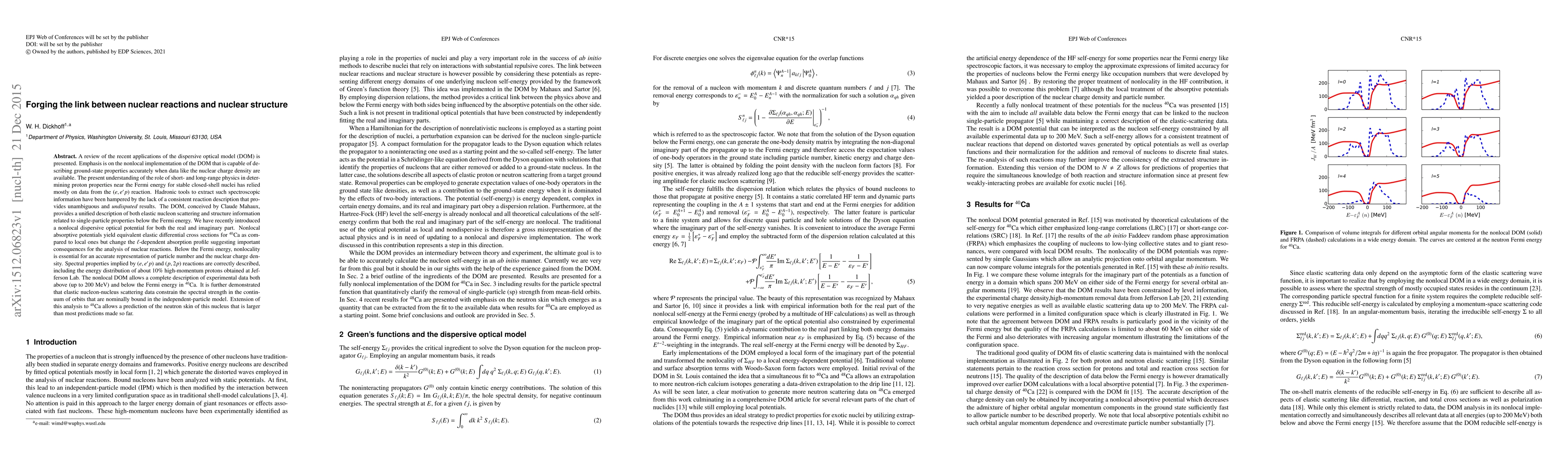 This paper reviews the dispersive optical model's nonlocal implementation, demonstrating its ability to accurately describe ground-state nuclear properties and reaction dynamics in $^{40}$Ca. The nonlocal model provides a unified framework for both elastic scattering and single-particle structure information, offering insights into the neutron skin thickness in $^{48}$Ca.