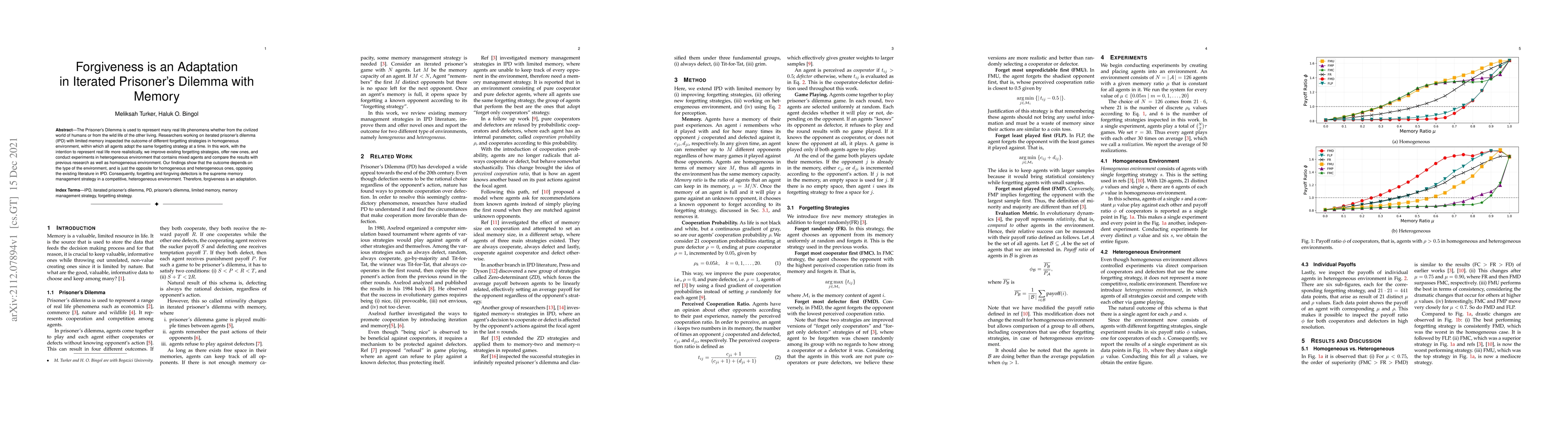 The Prisoner's Dilemma is used to represent many real life phenomena whether from the civilized world of humans or from the wild life of the other living. Researchers working on iterated prisoner's dilemma (IPD) with limited memory inspected the outcome of different forgetting strategies in homogeneous environment, within which all agents adopt the same forgetting strategy at a time. In this work, with the intention to represent real life more realistically, we improve existing forgetting strategies, offer new ones, and conduct experiments in heterogeneous environment that contains mixed agents and compare the results with previous research as well as homogeneous environment. Our findings show that the outcome depends on the type of the environment, and is just the opposite for homogeneous and heterogeneous ones, opposing the existing literature in IPD. Consequently, forgetting and forgiving defectors is the supreme memory management strategy in a competitive, heterogeneous environment. Therefore, forgiveness is an adaptation.