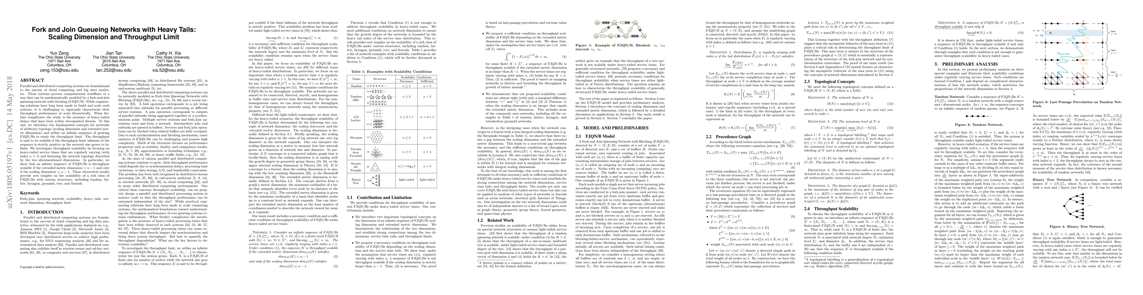 This paper explores the scalability of fork-and-join queueing networks with heavy-tailed delays, introducing scaling dimension and extended metric dimension to study throughput limit. It finds that certain network topologies are throughput scalable under specific conditions.