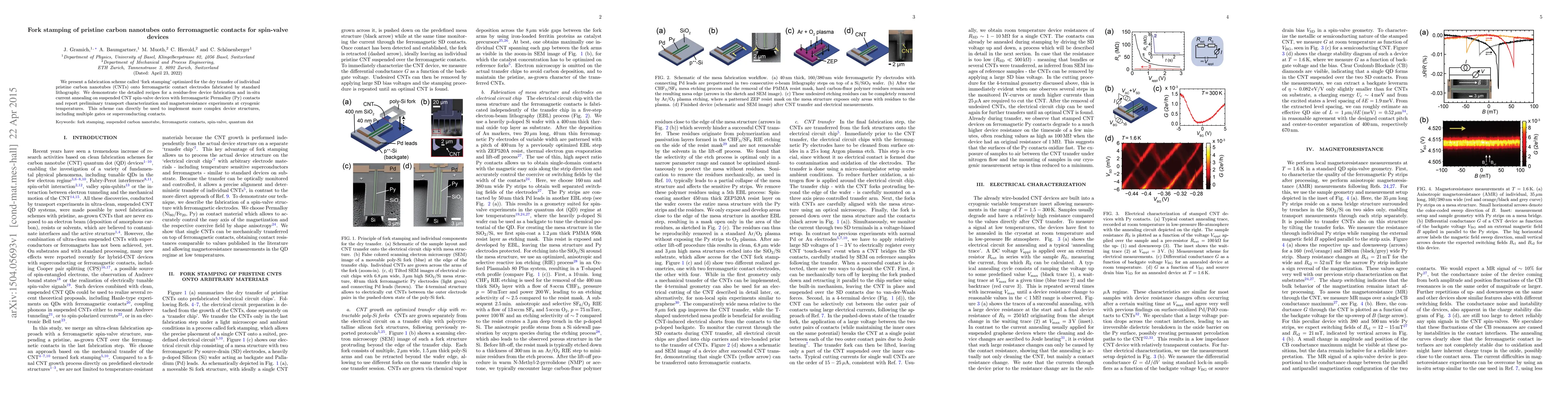 This paper introduces a 'fork stamping' method for transferring pristine carbon nanotubes onto ferromagnetic contacts, optimizing residue-free device fabrication. Preliminary transport and magnetoresistance experiments on CNT spin-valve devices with Permalloy contacts are reported, showcasing potential for complex device structures.