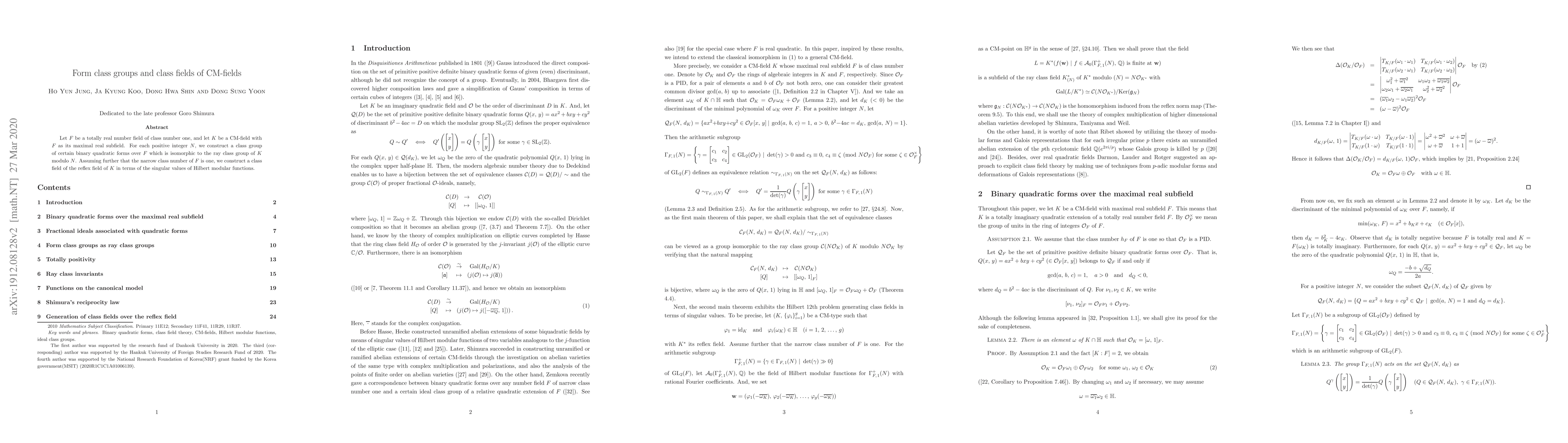 This paper constructs class groups of binary quadratic forms over a number field $F$ that are isomorphic to ray class groups of a CM-field $K$ containing $F$. It also establishes a class field of the reflex field of $K$ using singular values of Hilbert modular functions, under the condition that $F$ has a class number of one.