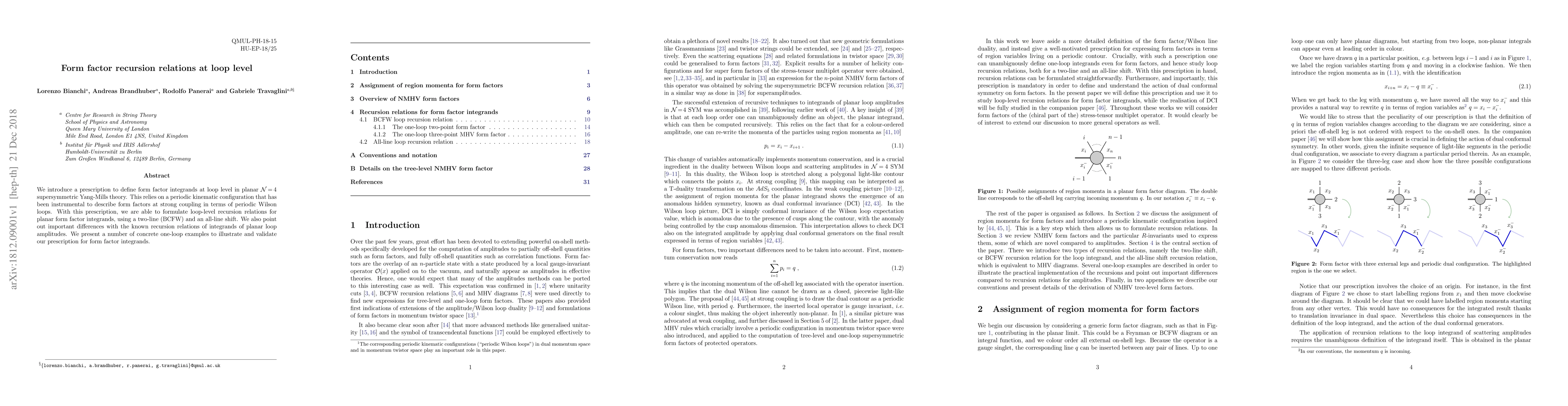 This paper proposes a method to define loop-level form factor integrands in planar $\mathcal{N}=4$ supersymmetric Yang-Mills theory, utilizing a periodic kinematic configuration. It formulates new loop-level recursion relations for these integrands, highlighting differences from known amplitude recursion relations and validating the approach with one-loop examples.