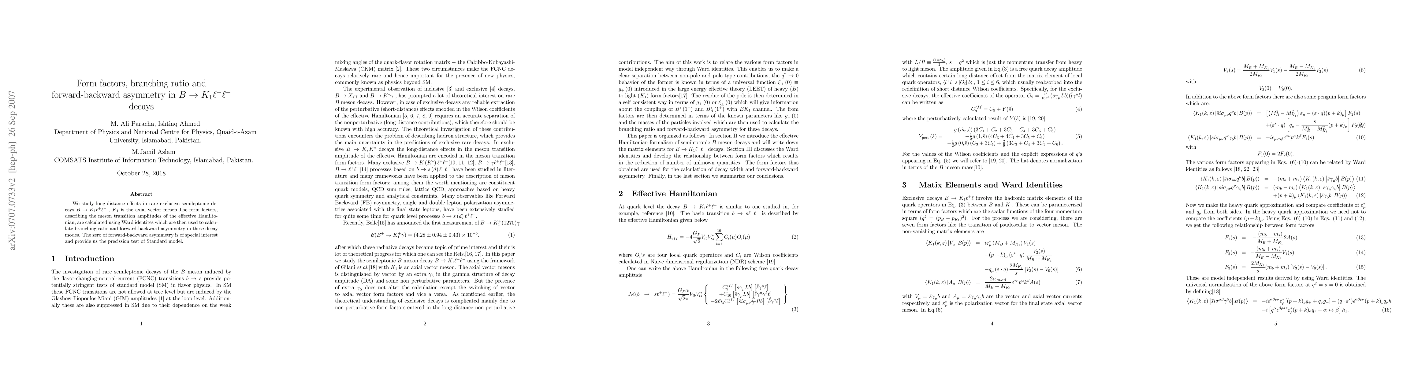 This paper calculates form factors for B -> K_{1}ℓ^{+}ℓ^{-} decays using Ward identities, and employs these to determine the branching ratio and the forward-backward asymmetry. The study focuses on the zero of the forward-backward asymmetry to test the precision of the Standard Model.