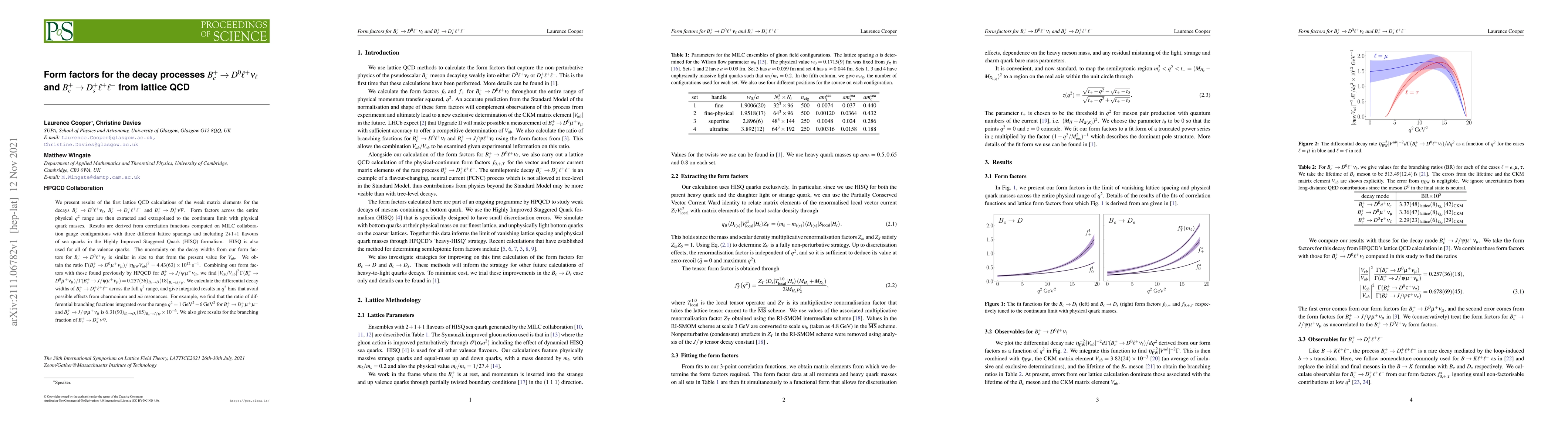 This paper presents the first lattice QCD calculations of form factors for the decays $B_c^+ \to D^0 \ell^+ \nu_{\ell}$ and $B_c^+ \to D_s^+ \ell^+ \ell^-$, extracting results across the entire $q^2$ range and extrapolating to the continuum limit. The study finds significant ratios for decay widths and branching fractions, including $\Gamma (B_{c}^{+} \rightarrow D^0 \mu^{+} \nu_{\mu}) /\left|\eta_{\mathrm{EW}} V_{ub}\right|^{2}=4.43(63) \times 10^{12} \mathrm{~s}^{-1}$.