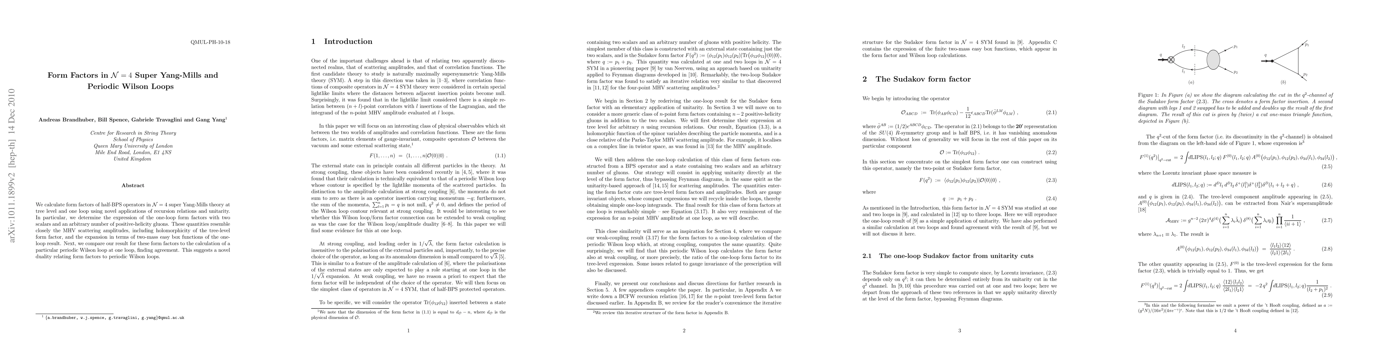 This research calculates form factors of half-BPS operators in N=4 super Yang-Mills theory, using recursion relations and unitarity. It finds agreement between the one-loop form factor calculations and periodic Wilson loop results, suggesting a new duality between form factors and periodic Wilson loops.