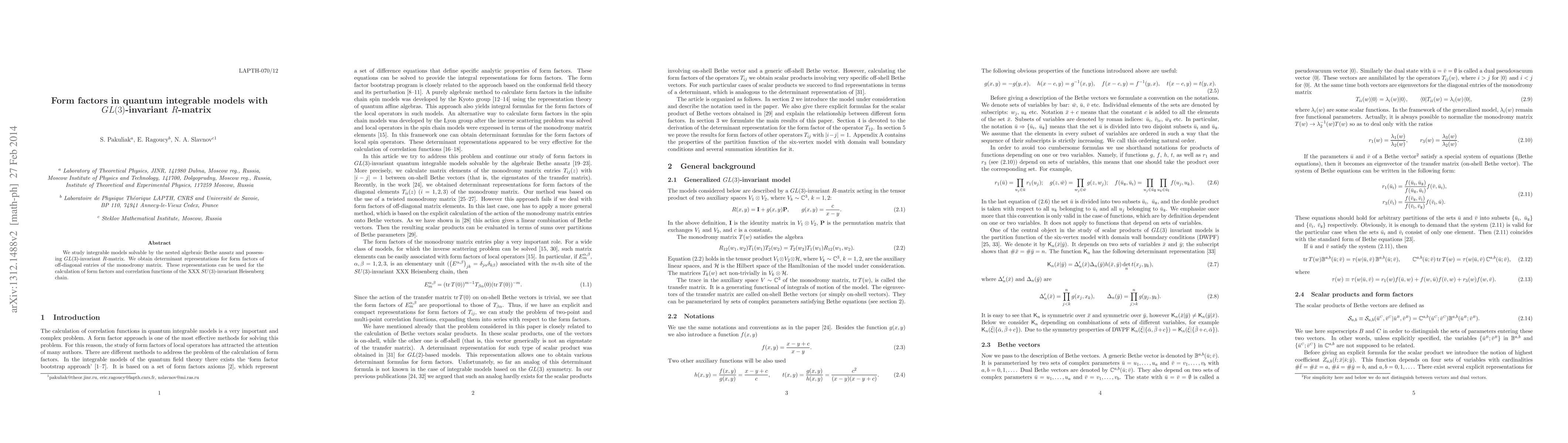 This paper investigates quantum integrable models solvable by the nested algebraic Bethe ansatz with a GL(3)-invariant R-matrix, deriving determinant representations for form factors of off-diagonal entries of the monodromy matrix, which facilitate calculations for the XXX SU(3)-invariant Heisenberg chain.