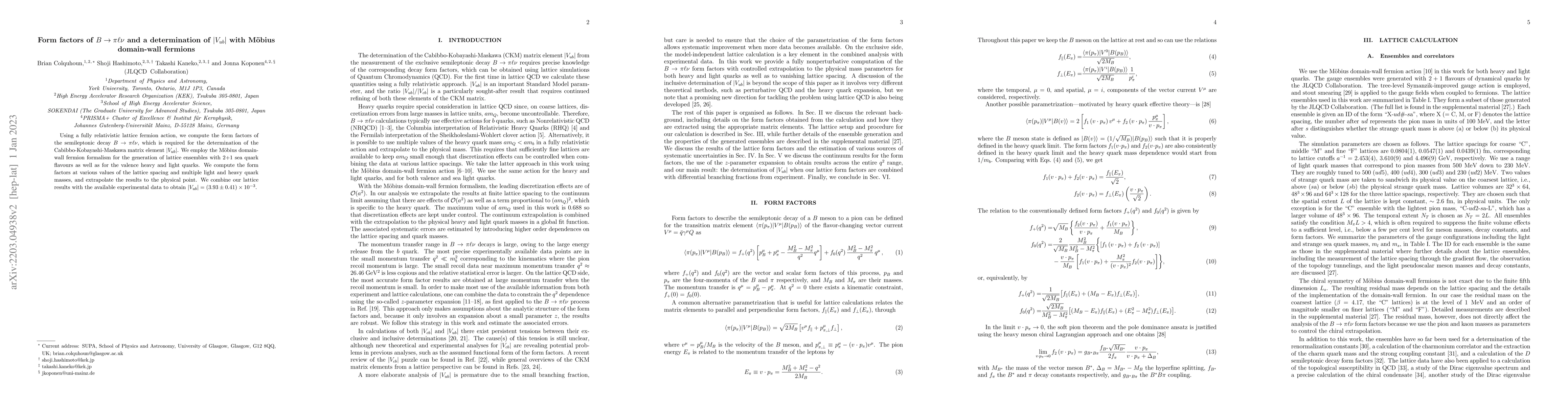 This paper computes the form factors for the decay $B\to\pi\ell\nu$ using lattice QCD with M\"{o}bius domain-wall fermions, aiming to determine the $|V_{ub}|$ matrix element. The results combine lattice calculations with experimental data to yield $|V_{ub}| = (3.93\pm 0.41)\times 10^{-3}$.