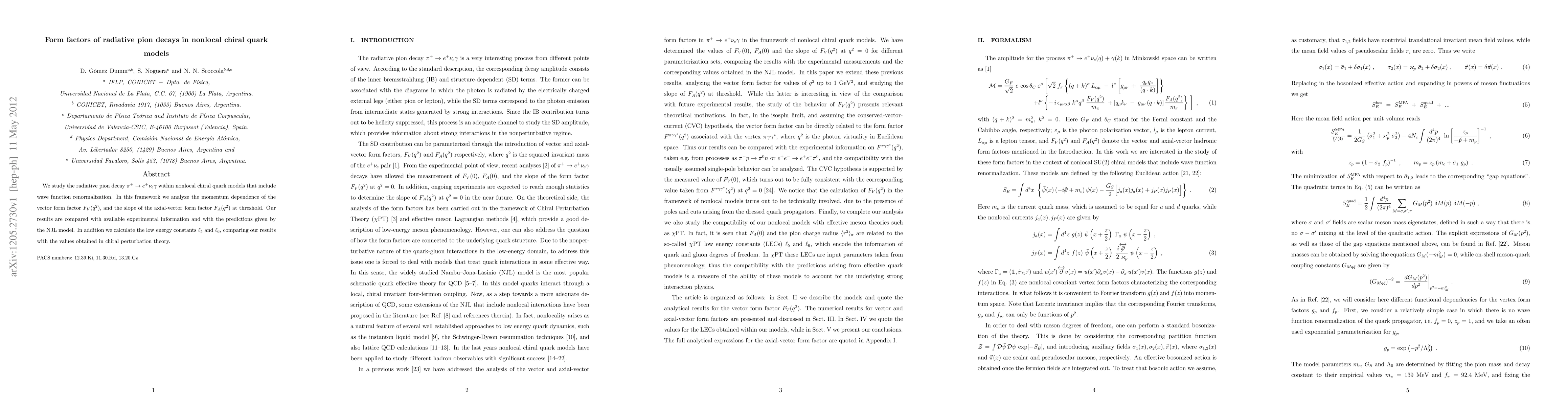 This paper investigates the radiative pion decay π+ → e+ ν_e γ using nonlocal chiral quark models, analyzing the momentum dependence of the vector form factor F_V(q^2) and the axial-vector form factor F_A(q^2) slope at threshold. Results are compared with experimental data and predictions from the NJL model, and low energy constants l_5 and l_6 are calculated, with comparisons to chiral perturbation theory values.