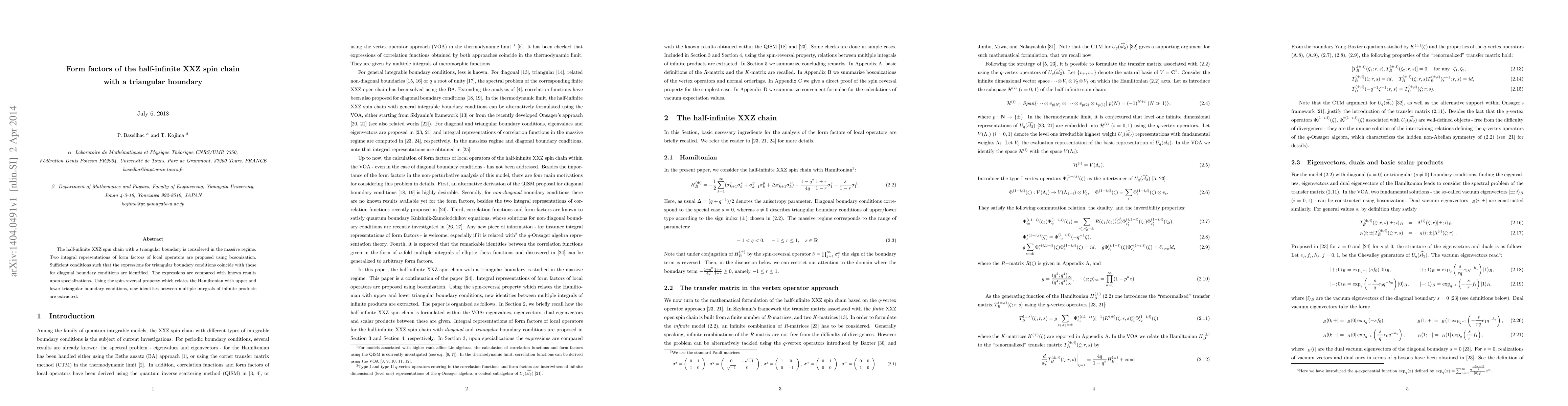 This paper proposes integral representations for form factors of local operators in the massive regime of the half-infinite XXZ spin chain with a triangular boundary, comparing them with known results and deriving new identities using spin-reversal properties. It identifies conditions under which these expressions align with those for diagonal boundaries.