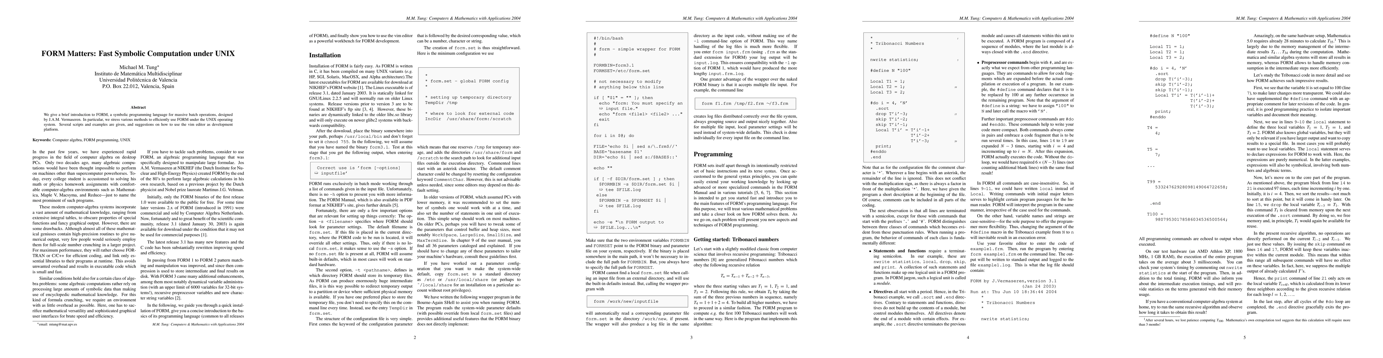 This paper introduces FORM, a symbolic programming language for efficient batch operations under UNIX, with practical examples and vim editor suggestions to maximize its use.