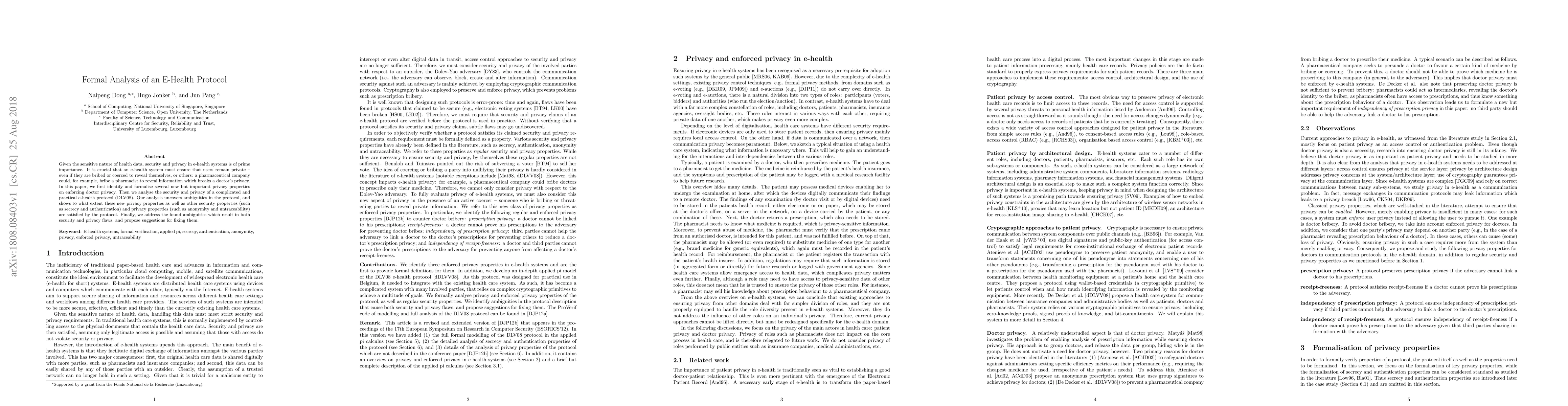 Given the sensitive nature of health data, security and privacy in e-health systems is of prime importance. It is crucial that an e-health system must ensure that users remain private - even if they are bribed or coerced to reveal themselves, or others: a pharmaceutical company could, for example, bribe a pharmacist to reveal information which breaks a doctor's privacy. In this paper, we first identify and formalise several new but important privacy properties on enforcing doctor privacy. Then we analyse the security and privacy of a complicated and practical e-health protocol (DLV08). Our analysis uncovers ambiguities in the protocol, and shows to what extent these new privacy properties as well as other security properties (such as secrecy and authentication) and privacy properties (such as anonymity and untraceability) are satisfied by the protocol. Finally, we address the found ambiguities which result in both security and privacy flaws, and propose suggestions for fixing them.