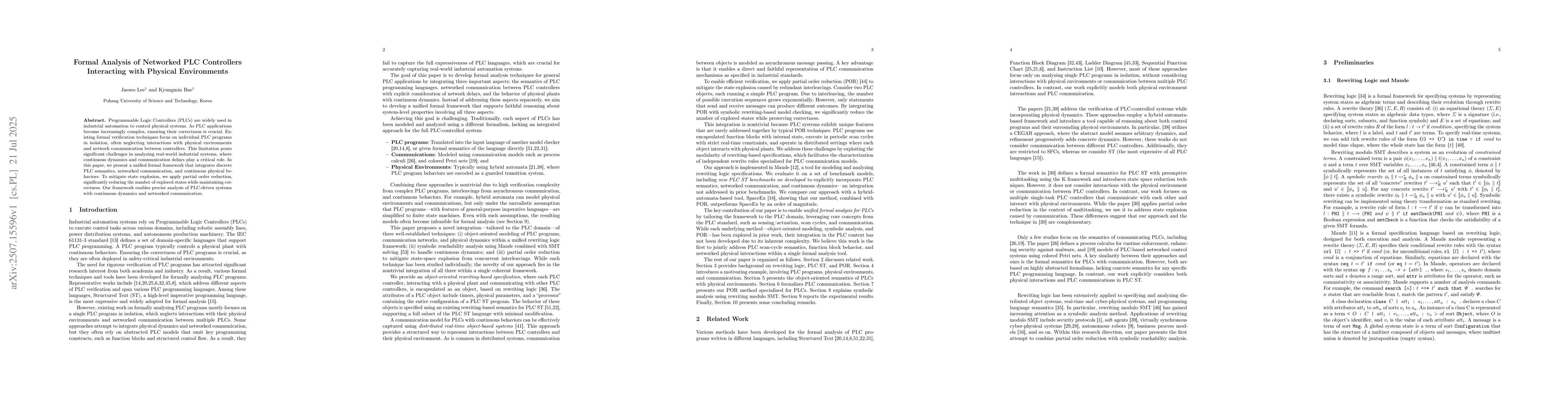 Programmable Logic Controllers (PLCs) are widely used in industrial automation to control physical systems. As PLC applications become increasingly complex, ensuring their correctness is crucial. Existing formal verification techniques focus on individual PLC programs in isolation, often neglecting interactions with physical environments and network communication between controllers. This limitation poses significant challenges in analyzing real-world industrial systems, where continuous dynamics and communication delays play a critical role. In this paper, we present a unified formal framework that integrates discrete PLC semantics, networked communication, and continuous physical behaviors. To mitigate state explosion, we apply partial order reduction, significantly reducing the number of explored states while maintaining correctness. Our framework enables precise analysis of PLC-driven systems with continuous dynamics and networked communication.