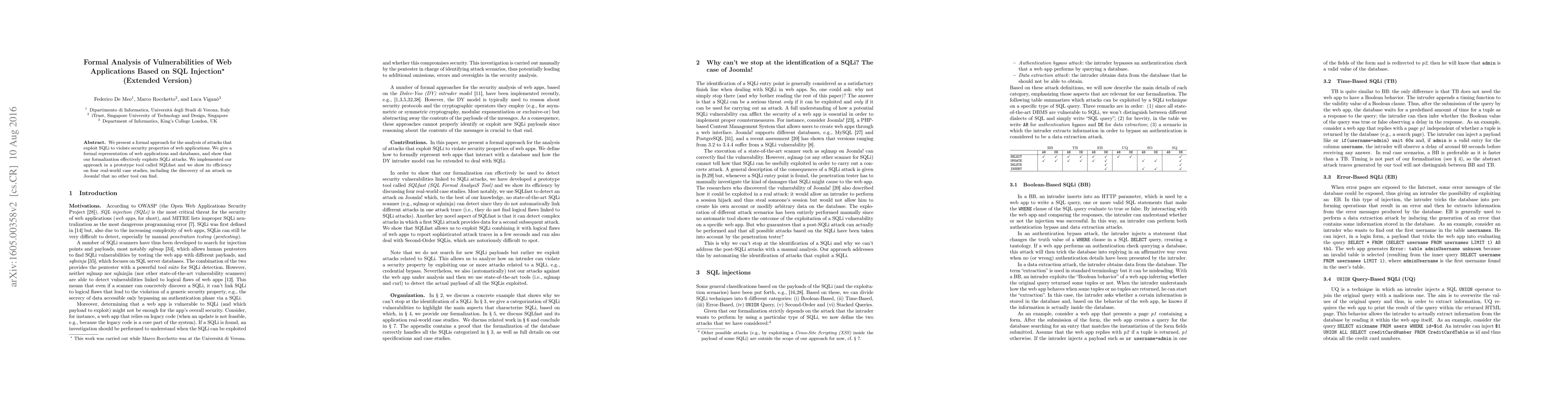 This paper proposes a formal method to identify SQL Injection vulnerabilities in web applications, demonstrating its effectiveness through a prototype tool called SQLfast. The study showcases the tool's success in detecting a previously undiscovered attack on Joomla!, highlighting its practical utility.
