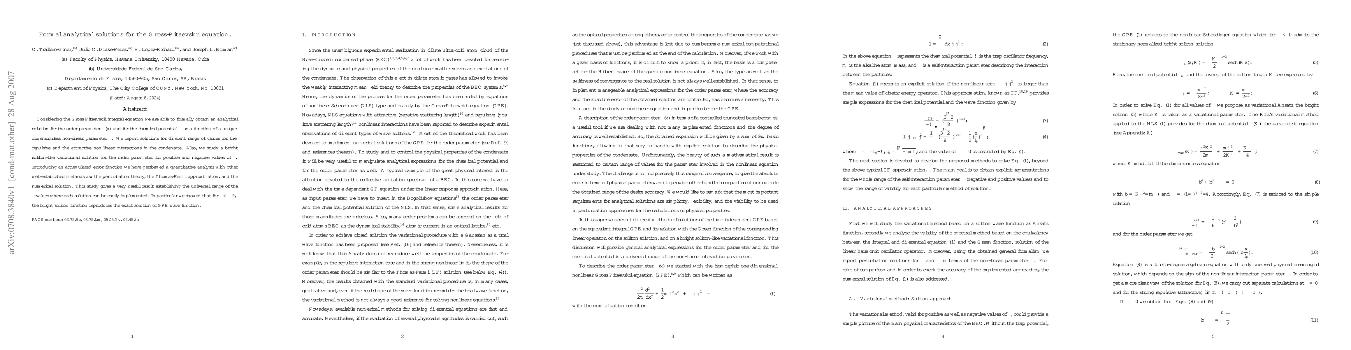 This paper presents formal analytical solutions for the Gross-Pitaevskii equation, deriving expressions for the order parameter and chemical potential as functions of a non-linear parameter $\Lambda$. It also compares these solutions with perturbation theory, Thomas-Fermi approximation, and numerical methods, establishing the range of $\Lambda$ where the bright soliton solution accurately reproduces the exact wave function.