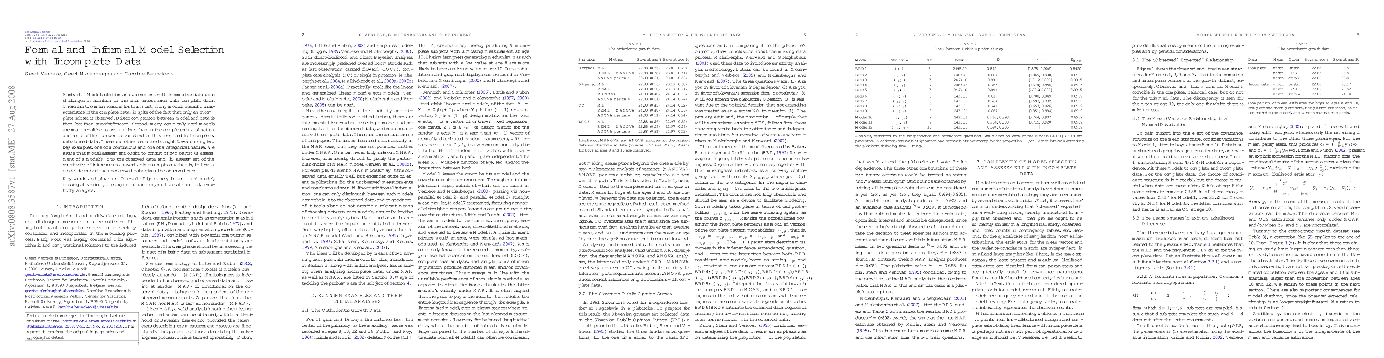 Model selection and assessment with incomplete data pose challenges in addition to the ones encountered with complete data. There are two main reasons for this. First, many models describe characteristics of the complete data, in spite of the fact that only an incomplete subset is observed. Direct comparison between model and data is then less than straightforward. Second, many commonly used models are more sensitive to assumptions than in the complete-data situation and some of their properties vanish when they are fitted to incomplete, unbalanced data. These and other issues are brought forward using two key examples, one of a continuous and one of a categorical nature. We argue that model assessment ought to consist of two parts: (i) assessment of a model's fit to the observed data and (ii) assessment of the sensitivity of inferences to unverifiable assumptions, that is, to how a model described the unobserved data given the observed ones.