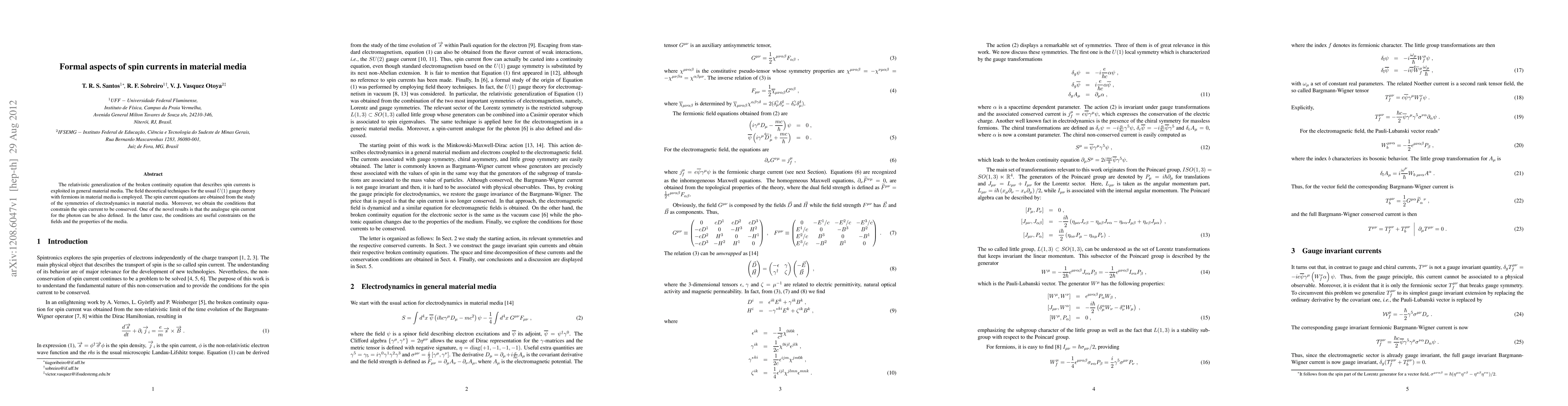 This paper explores the relativistic generalization of spin currents in material media using U(1) gauge theory and field theoretical techniques. It derives conditions for spin current conservation and introduces an analogue spin current for photons, providing constraints on fields and media properties.