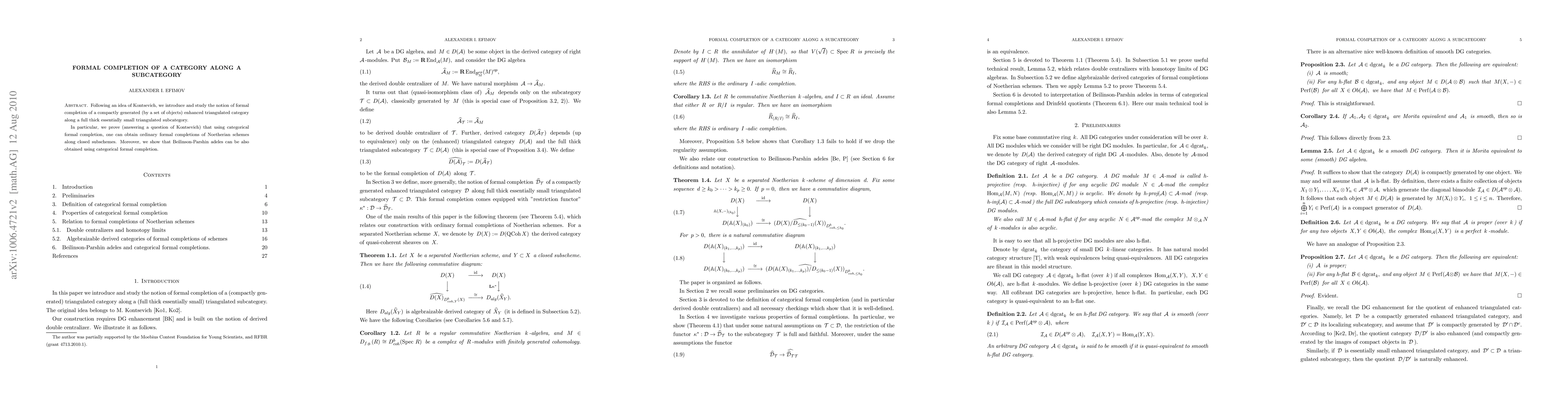 This paper introduces the concept of formal completion of an enhanced triangulated category along a full thick subcategory, proving that it yields ordinary formal completions of Noetherian schemes and Beilinson-Parshin adeles, answering a question posed by Kontsevich.