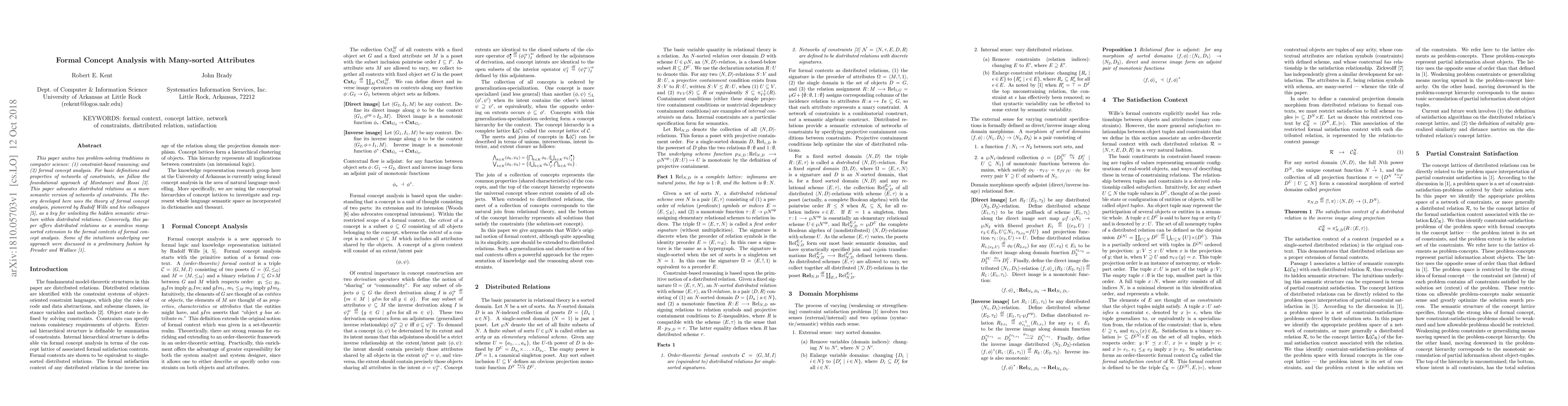 This paper integrates constraint-based reasoning with formal concept analysis, proposing distributed relations as a semantic extension to formal contexts, leveraging the hidden semantic structure within these relations. It builds on the foundational work of Montanari, Rossi, and Wille, offering a many-sorted attribute framework.