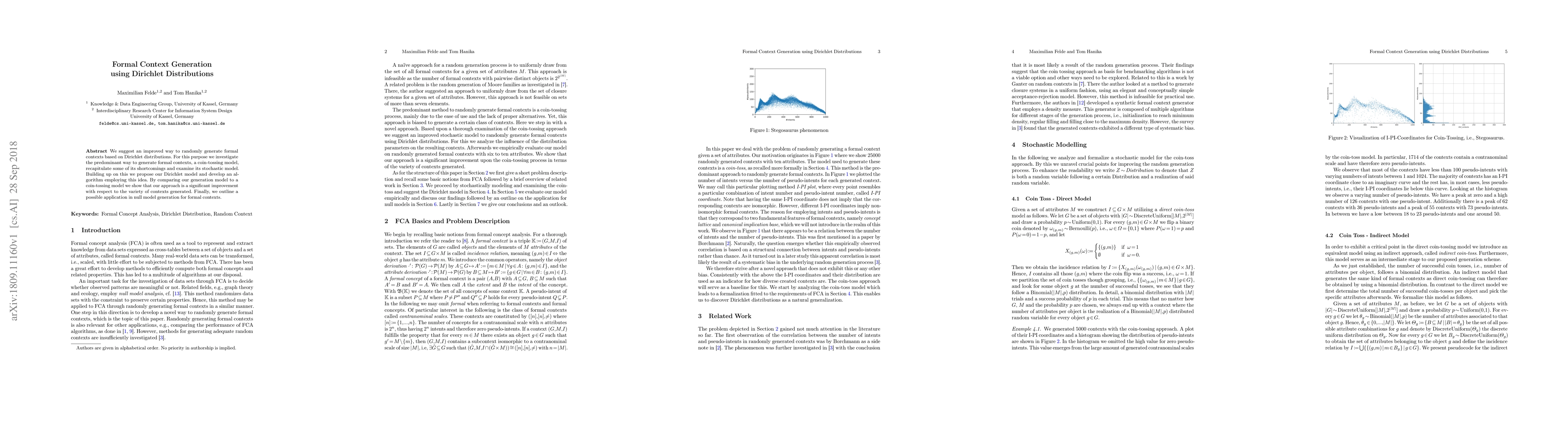 This research introduces a novel method for randomly generating formal contexts using Dirichlet distributions, improving upon the traditional coin-tossing model. The proposed Dirichlet model generates a more diverse range of contexts and is outlined for potential use in null model generation for formal contexts.