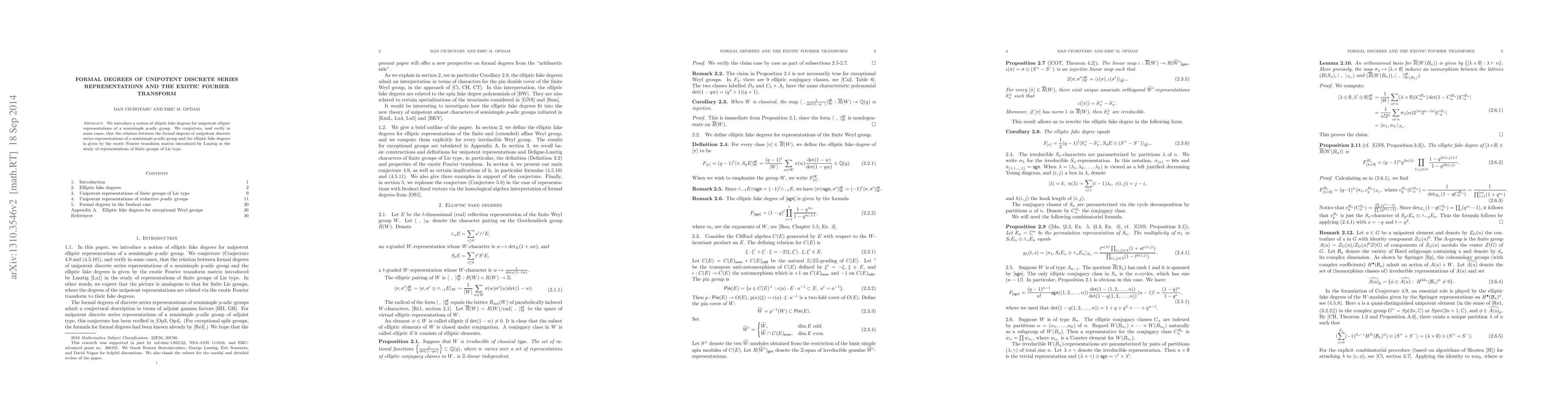 We introduce a notion of elliptic fake degrees for unipotent elliptic representations of a semisimple p-adic group. We conjecture, and verify in some cases, that the relation between the formal degrees of unipotent discrete series representations of a semisimple p-adic group and the elliptic fake degrees is given by the exotic Fourier transform matrix introduced by Lusztig in the study of representations of finite groups of Lie type.
