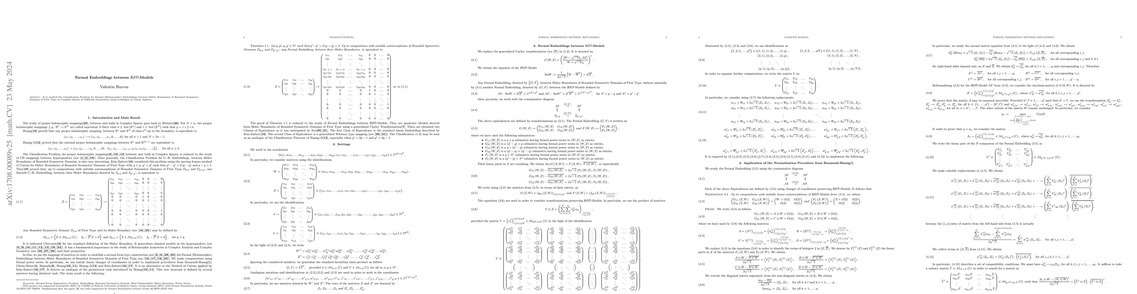Summary: This paper investigates the classification problem for formal embeddings between Shilov boundaries of bounded symmetric domains of first type, focusing on their holomorphic properties. The research aims to understand the structural relationships and classifications within these mathematical objects.