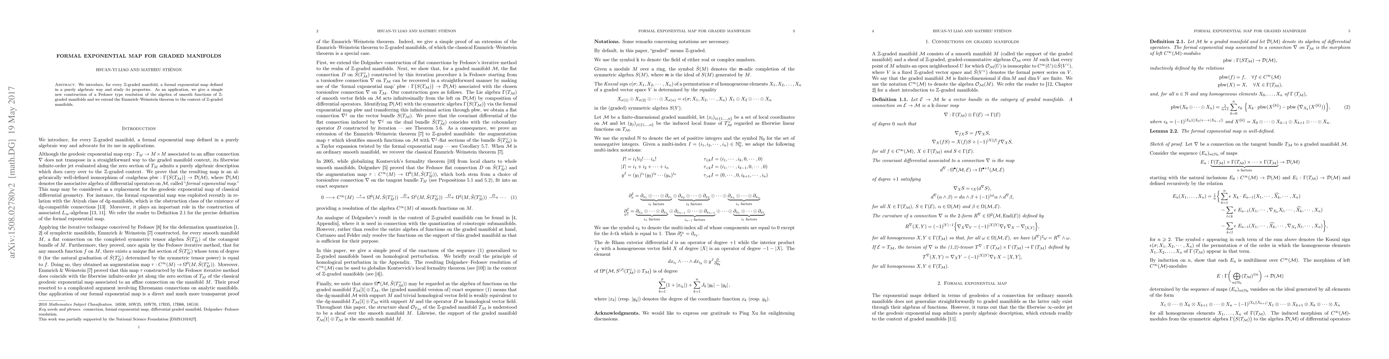 This paper introduces a formal exponential map for $\mathbb{Z}$-graded manifolds, providing a purely algebraic definition and exploring its properties. It also presents a new Fedosov-type resolution for the algebra of smooth functions on these manifolds and extends the Emmrich-Weinstein theorem to the graded context.