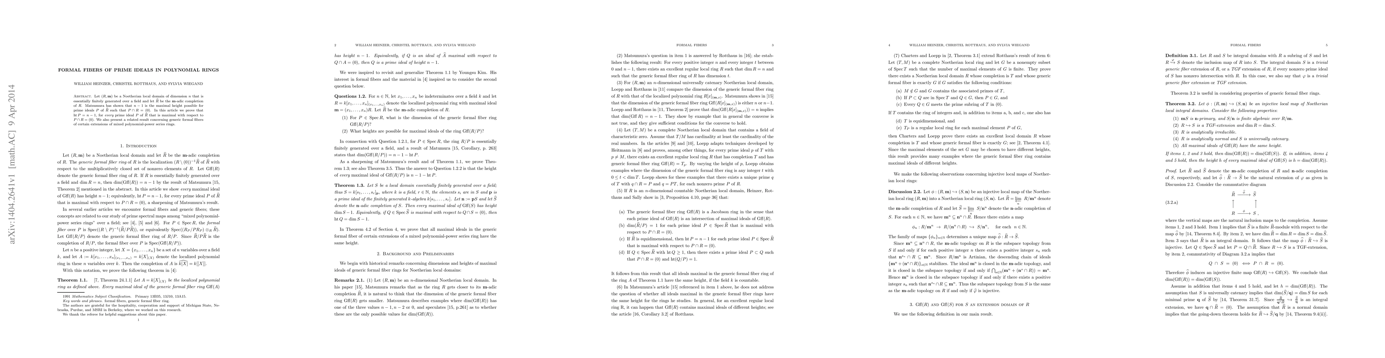 This paper proves that in a Noetherian local domain R essentially finitely generated over a field, every prime ideal of the m-adic completion R^ that is maximal in the generic formal fiber has height n-1, where n is the dimension of R. It also discusses related results on the generic formal fibers of mixed polynomial-power series ring extensions.