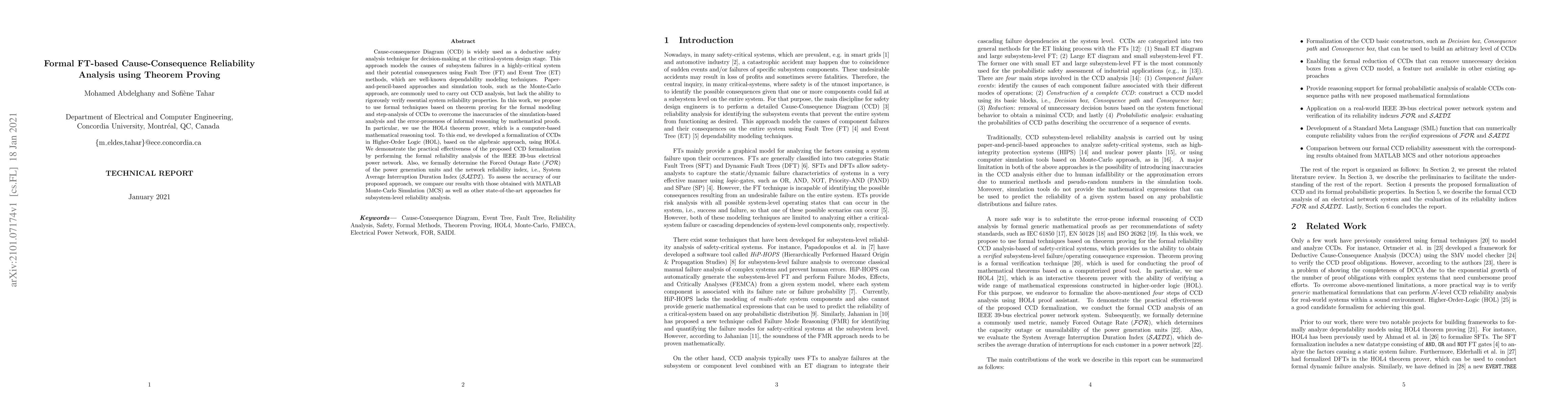 The paper proposes a formal approach for Cause-Consequence Diagrams (CCD) analysis using the HOL4 theorem prover, providing new mathematical formulations for multi-state system components and any given probabilistic distribution and failure rates.