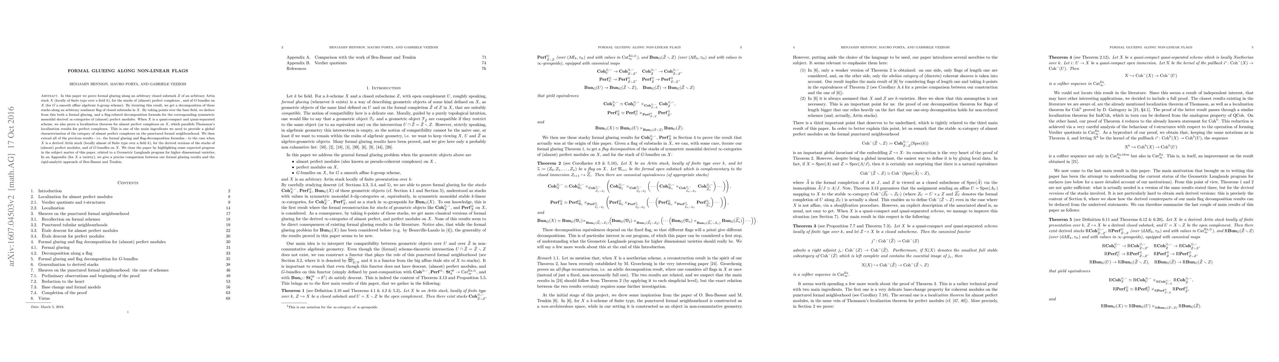 This paper proves formal glueing along a nonlinear flag for Artin stacks of almost perfect complexes and G-bundles, leading to a decomposition formula and a localization theorem for quasi-compact schemes.