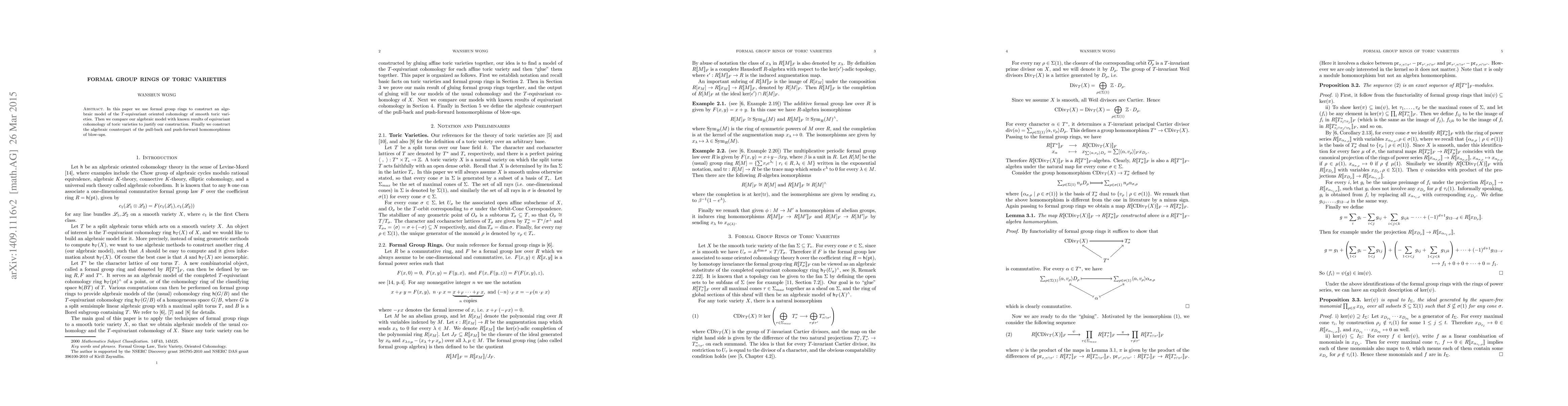This paper constructs an algebraic model using formal group rings for the $T$-equivariant oriented cohomology of smooth toric varieties and validates the model by comparing it with established results on the equivariant cohomology of toric varieties.