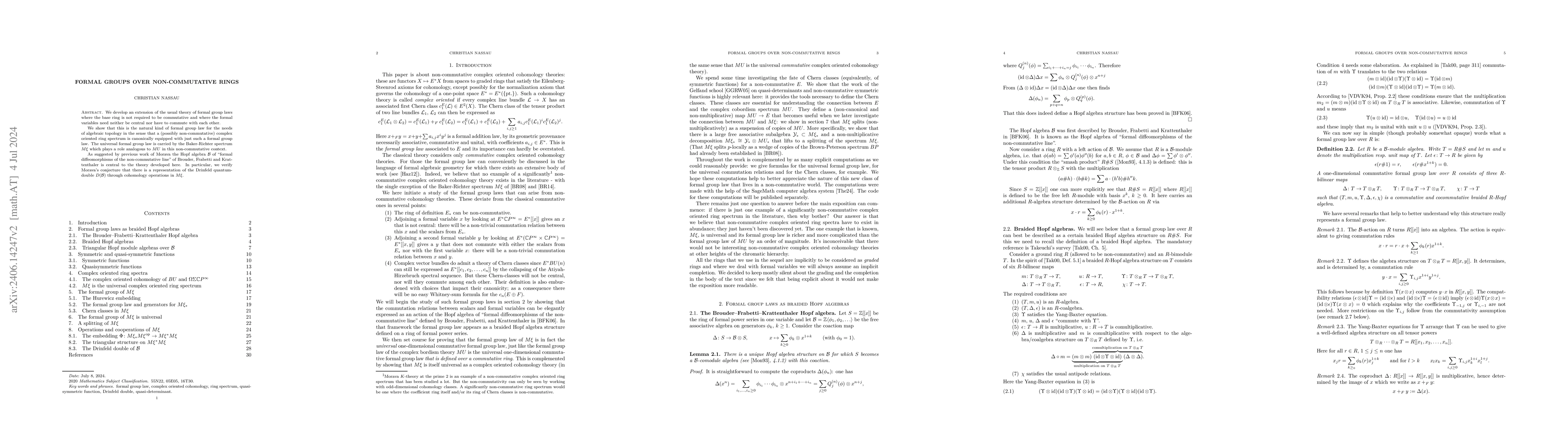 We develop an extension of the usual theory of formal group laws where the base ring is not required to be commutative and where the formal variables need neither be central nor have to commute with each other. We show that this is the natural kind of formal group law for the needs of algebraic topology in the sense that a (possibly non-commutative) complex oriented ring spectrum is canonically equipped with just such a formal group law. The universal formal group law is carried by the Baker-Richter spectrum M{\xi} which plays a role analogous to MU in this non-commutative context. As suggested by previous work of Morava the Hopf algebra B of "formal diffeomorphisms of the non-commutative line" of Brouder, Frabetti and Krattenthaler is central to the theory developed here. In particular, we verify Morava's conjecture that there is a representation of the Drinfeld quantum-double D(B) through cohomology operations in M{\xi}.