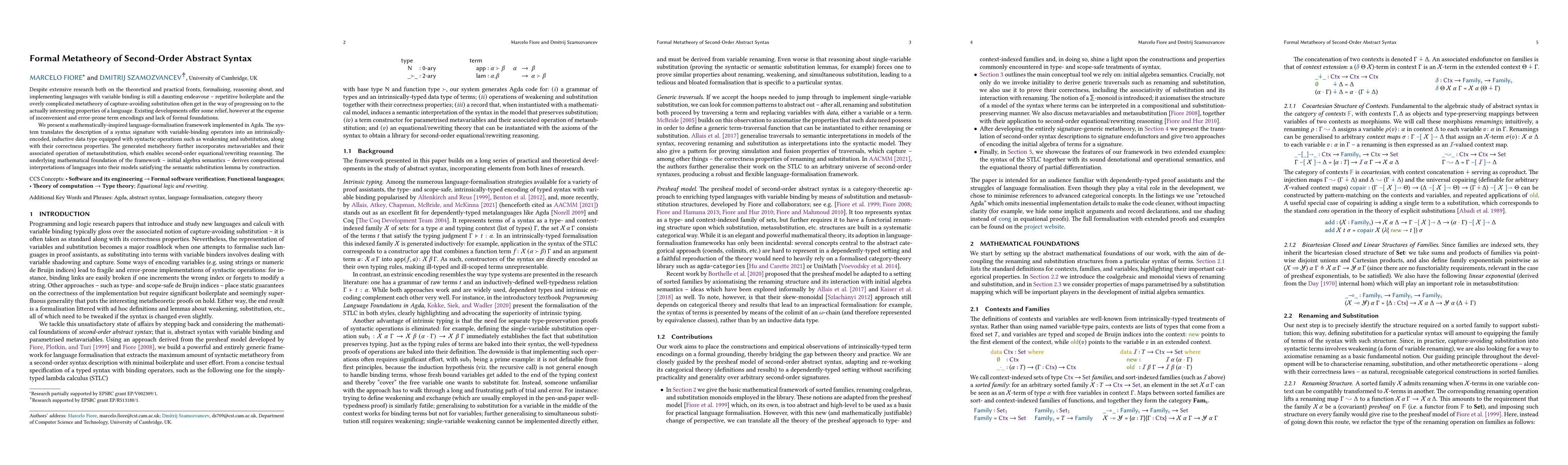 Despite extensive research both on the theoretical and practical fronts, formalising, reasoning about, and implementing languages with variable binding is still a daunting endeavour - repetitive boilerplate and the overly complicated metatheory of capture-avoiding substitution often get in the way of progressing on to the actually interesting properties of a language. Existing developments offer some relief, however at the expense of inconvenient and error-prone term encodings and lack of formal foundations. We present a mathematically-inspired language-formalisation framework implemented in Agda. The system translates the description of a syntax signature with variable-binding operators into an intrinsically-encoded, inductive data type equipped with syntactic operations such as weakening and substitution, along with their correctness properties. The generated metatheory further incorporates metavariables and their associated operation of metasubstitution, which enables second-order equational/rewriting reasoning. The underlying mathematical foundation of the framework - initial algebra semantics - derives compositional interpretations of languages into their models satisfying the semantic substitution lemma by construction.