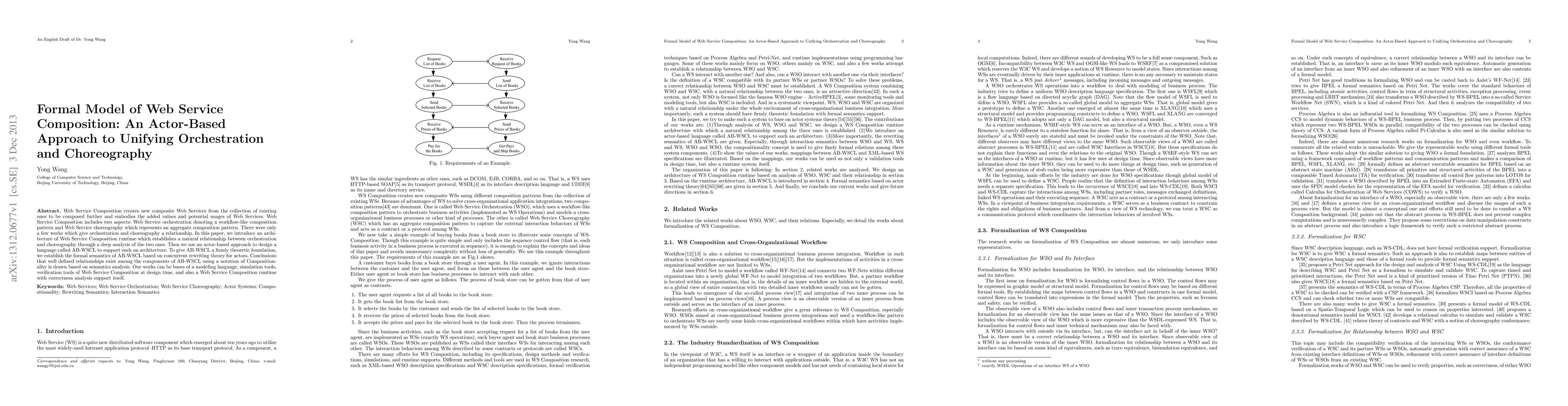 Web Service Composition creates new composite Web Services from the collection of existing ones to be composed further and embodies the added values and potential usages of Web Services. Web Service Composition includes two aspects: Web Service orchestration denoting a workflow-like composition pattern and Web Service choreography which represents an aggregate composition pattern. There were only a few works which give orchestration and choreography a relationship. In this paper, we introduce an architecture of Web Service Composition runtime which establishes a natural relationship between orchestration and choreography through a deep analysis of the two ones. Then we use an actor-based approach to design a language called AB-WSCL to support such an architecture. To give AB-WSCL a firmly theoretic foundation, we establish the formal semantics of AB-WSCL based on concurrent rewriting theory for actors. Conclusions that well defined relationships exist among the components of AB-WSCL using a notation of Compositionality is drawn based on semantics analysis. Our works can be bases of a modeling language, simulation tools, verification tools of Web Service Composition at design time, and also a Web Service Composition runtime with correctness analysis support itself.