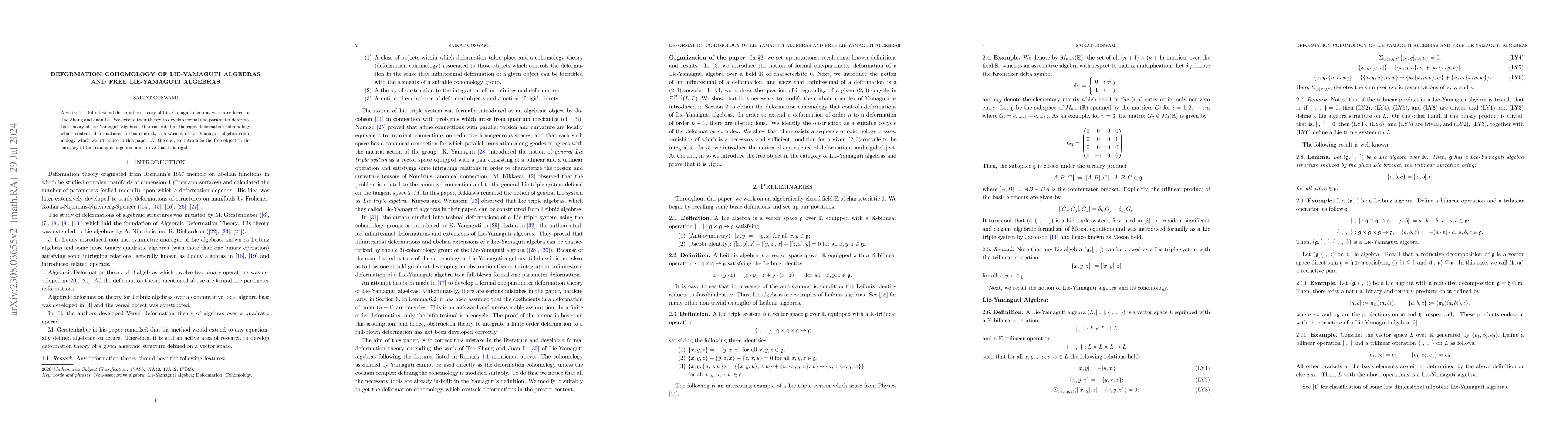 This paper extends the infinitesimal deformation theory of Lie-Yamaguti algebras to formal one-parameter deformations, revealing that the right deformation cohomology is a variant of Lie-Yamaguti algebra cohomology. It concludes by proving that the free Lie-Yamaguti algebra is rigid.