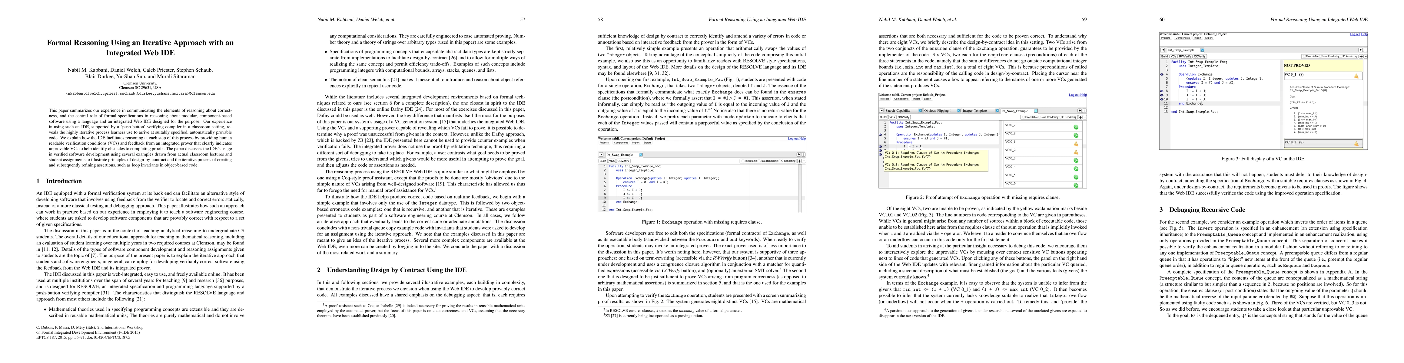This paper explores the use of an integrated Web IDE with a verifying compiler to teach formal reasoning in modular, component-based software development, highlighting the iterative process learners use to achieve provable code through human-readable verification conditions and feedback.