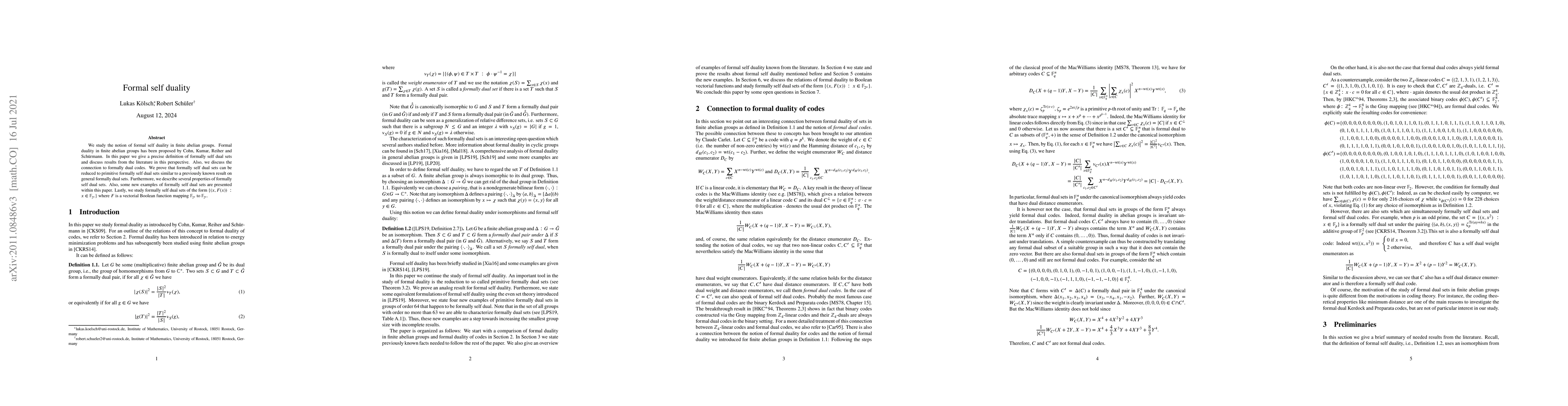 This research contributes to the understanding of formally dual codes and their applications in cryptography and coding theory.