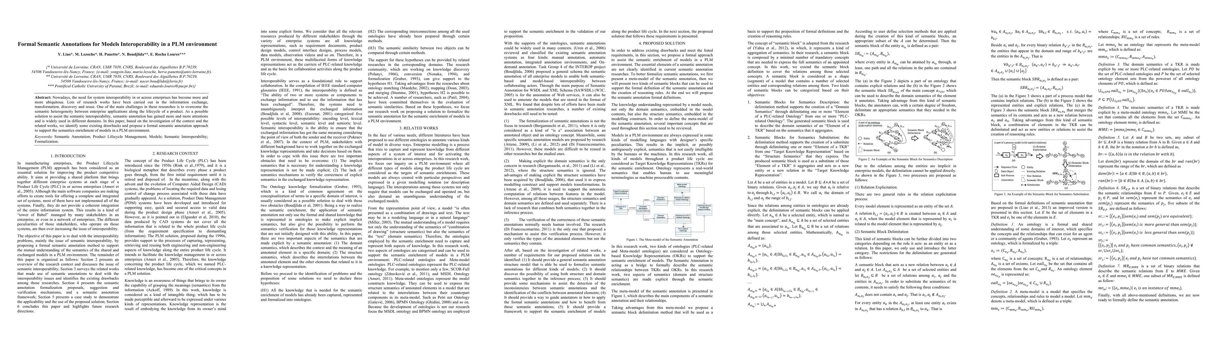 This paper investigates the challenges of semantic heterogeneity in enterprise applications and proposes a formal semantic annotation approach to enhance model interoperability in a Product Lifecycle Management (PLM) environment. The proposed method aims to address existing drawbacks in semantic annotation to improve information exchange and reuse across systems.