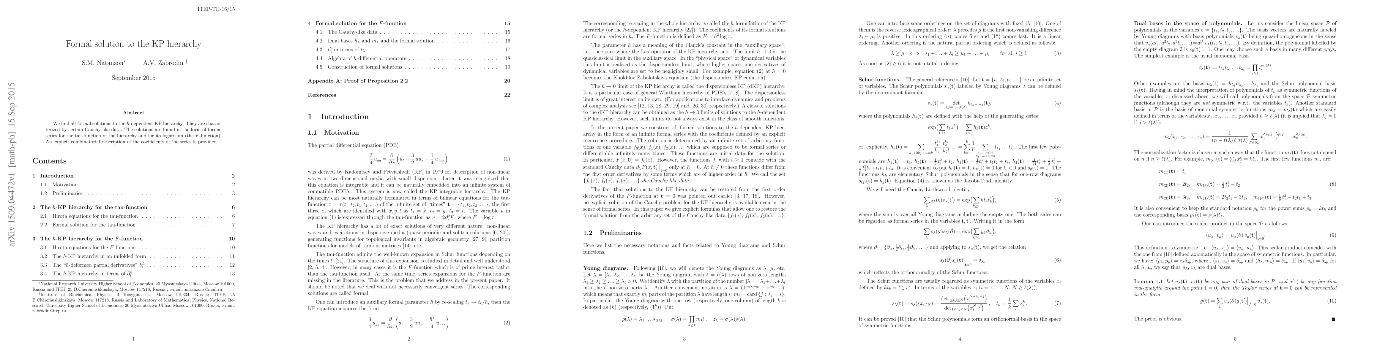 We find all formal solutions to the $\hbar$-dependent KP hierarchy. They are characterized by certain Cauchy-like data. The solutions are found in the form of formal series for the tau-function of the hierarchy and for its logarithm (the F-function). An explicit combinatorial description of the coefficients of the series is provided.