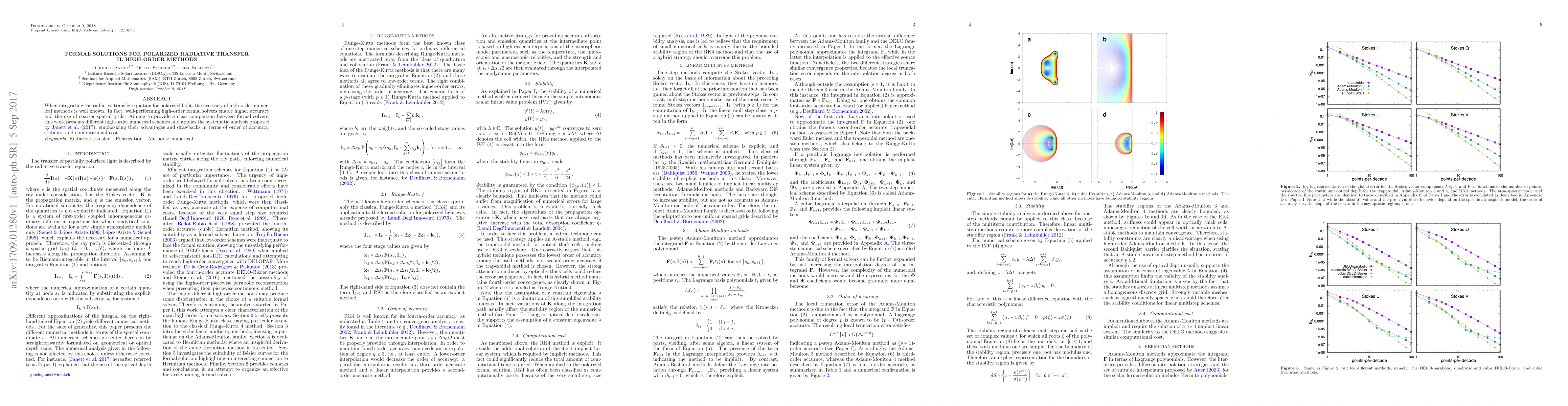 When integrating the radiative transfer equation for polarized light, the necessity of high-order numerical methods is well known. In fact, well-performing high-order formal solvers enable higher accuracy and the use of coarser spatial grids. Aiming to provide a clear comparison between formal solvers, this work presents different high-order numerical schemes and applies the systematic analysis proposed by Janett et al. (2017), emphasizing their advantages and drawbacks in terms of order of accuracy, stability, and computational cost.